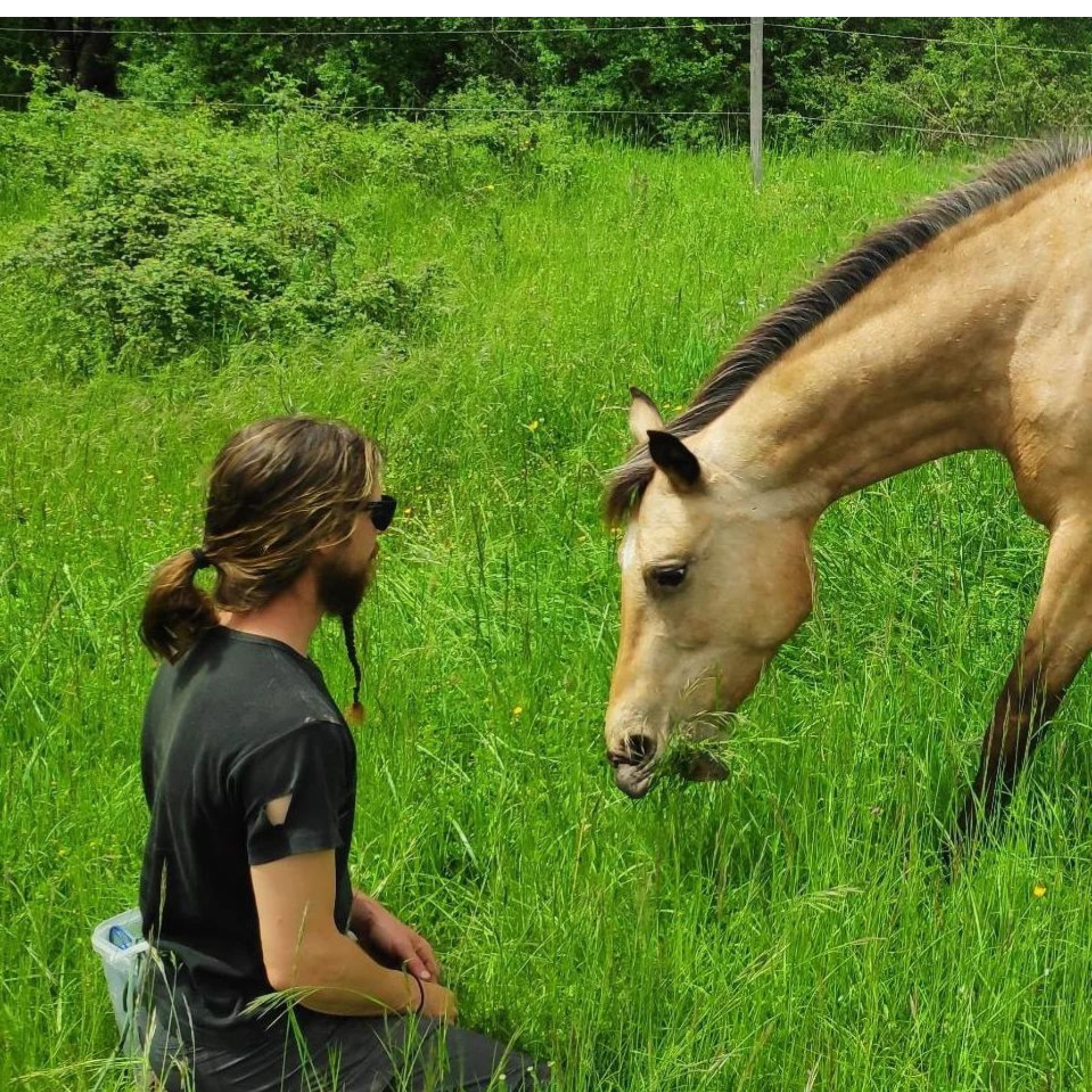L’objectif sera de se mettre à la hauteur du cheval pour entrer en relation de manière douce.
