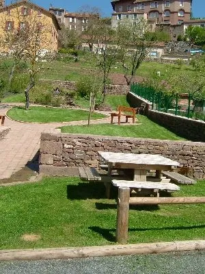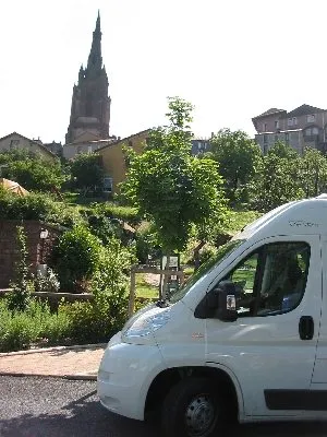 Une aire municipale gratuite, calme donnant accès à un petit jardin verdoyant. Vue imprenable sur la Collégiale.