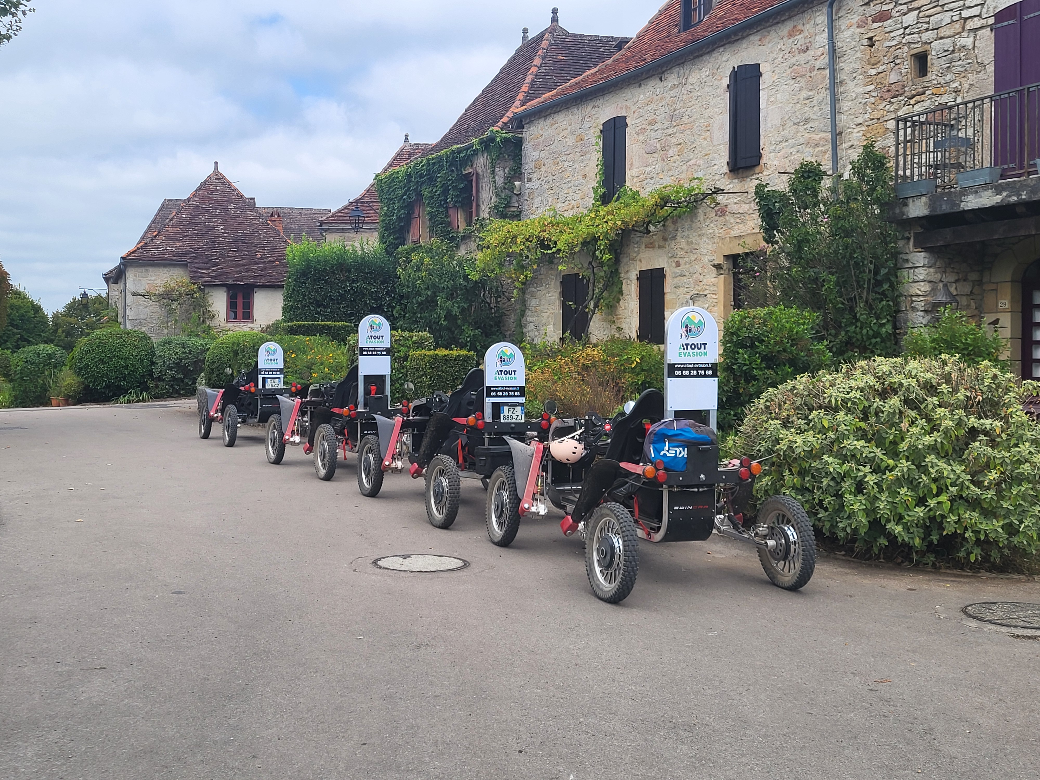 A bord de ses Swincar e-Spider tandem, atout évasion vous fera découvrir une nouvelle façon de vous déplacer, amusante et étonnante. Souple et agile le e-Spider « danse » et vous transporte sur les terrains les plus escarpés. Vous serez surpris par sa maniabilité et ses capacités de franchissement. Il est accessible aux personnes a mobilité réduite. Swincar e-Spider est un véhicule 100% électrique, il est silencieux et ne rejete pas de CO2. Il respecte la nature, les randonneurs et les cyclistes. Une nouvelle expérience de découverte des merveilles Lotoise. 2 points de départs: > Camping Capfun Roca d’amour à Padirac > Ferme Cazal à Loubressac