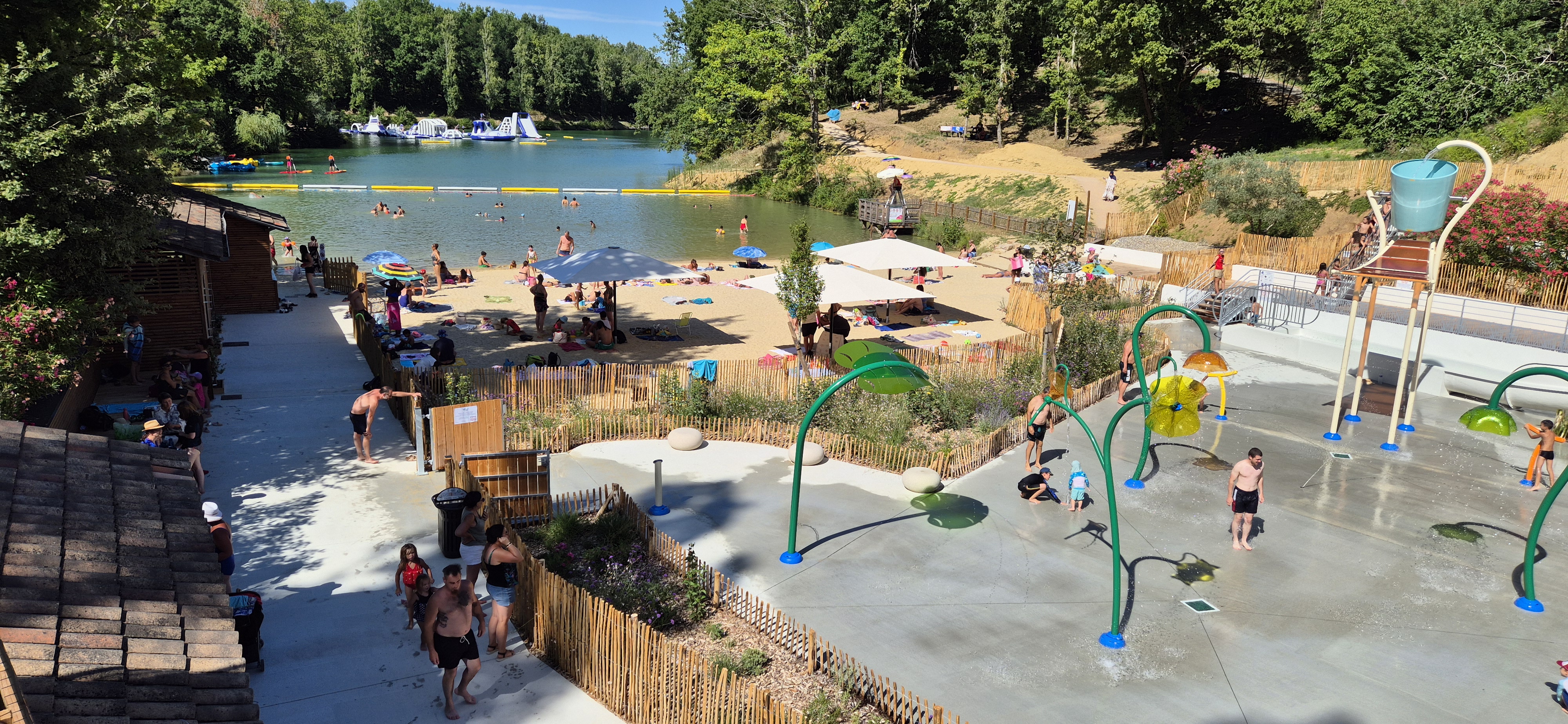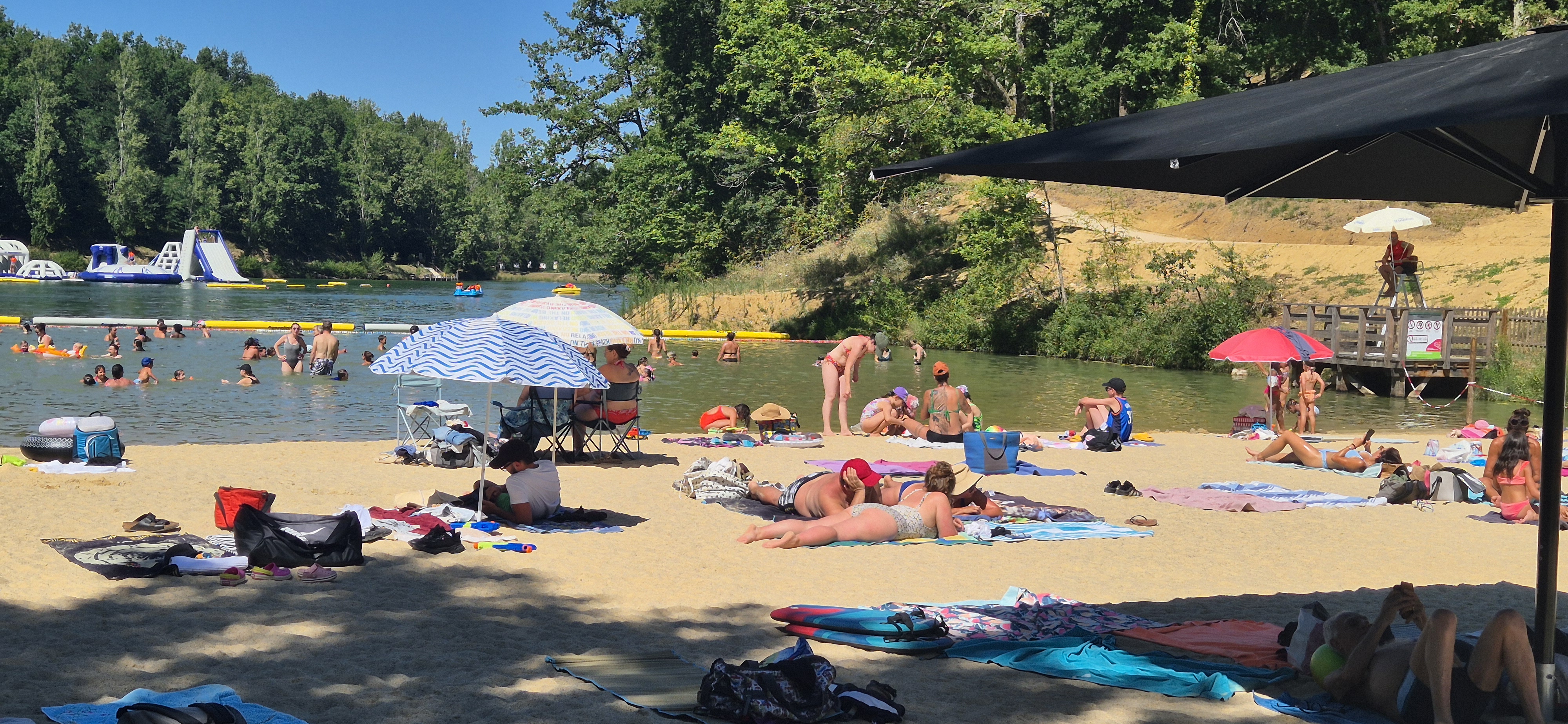 Plage baignable dans le lac de Lafrançaise et jeux aquatique
