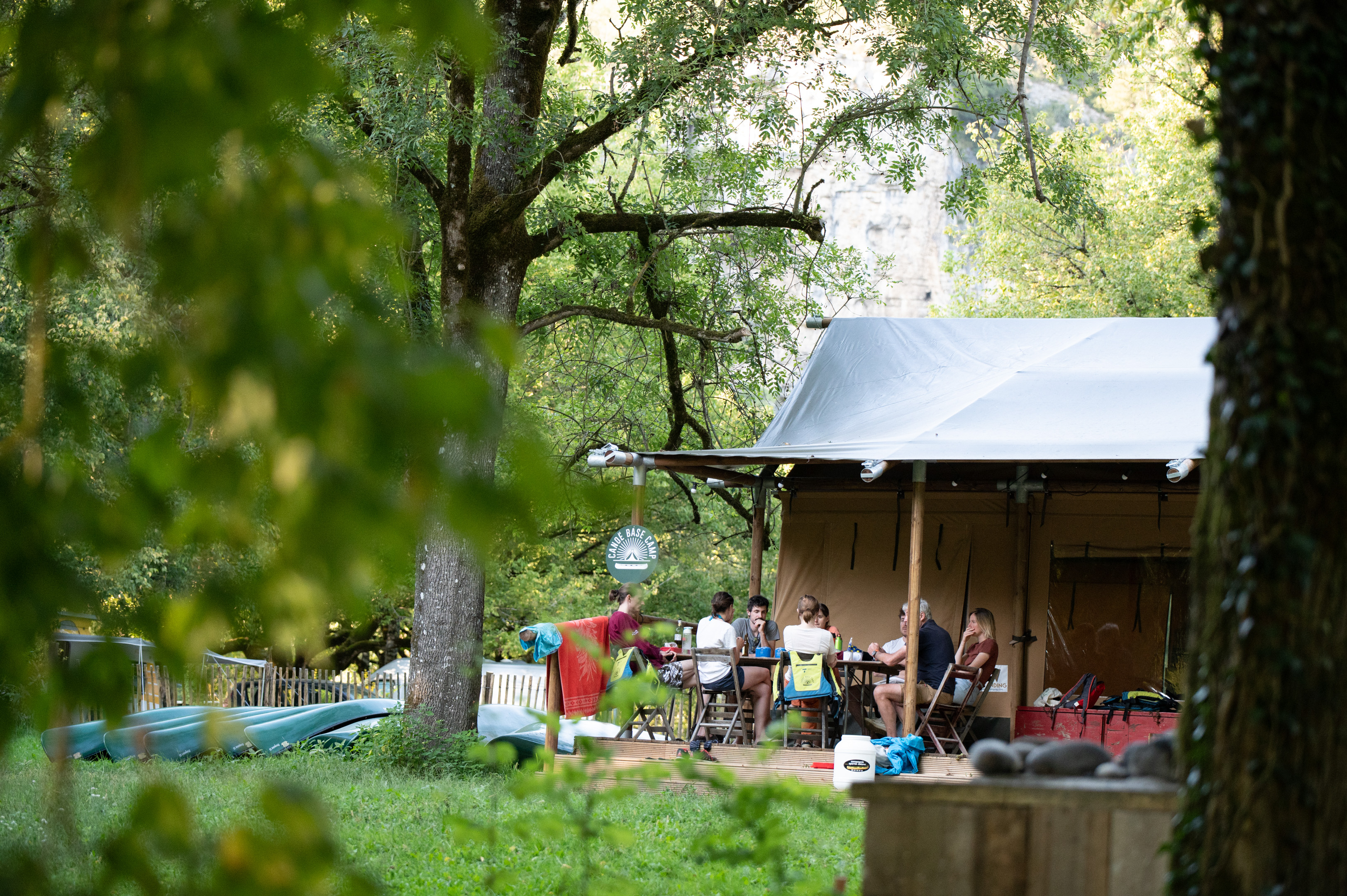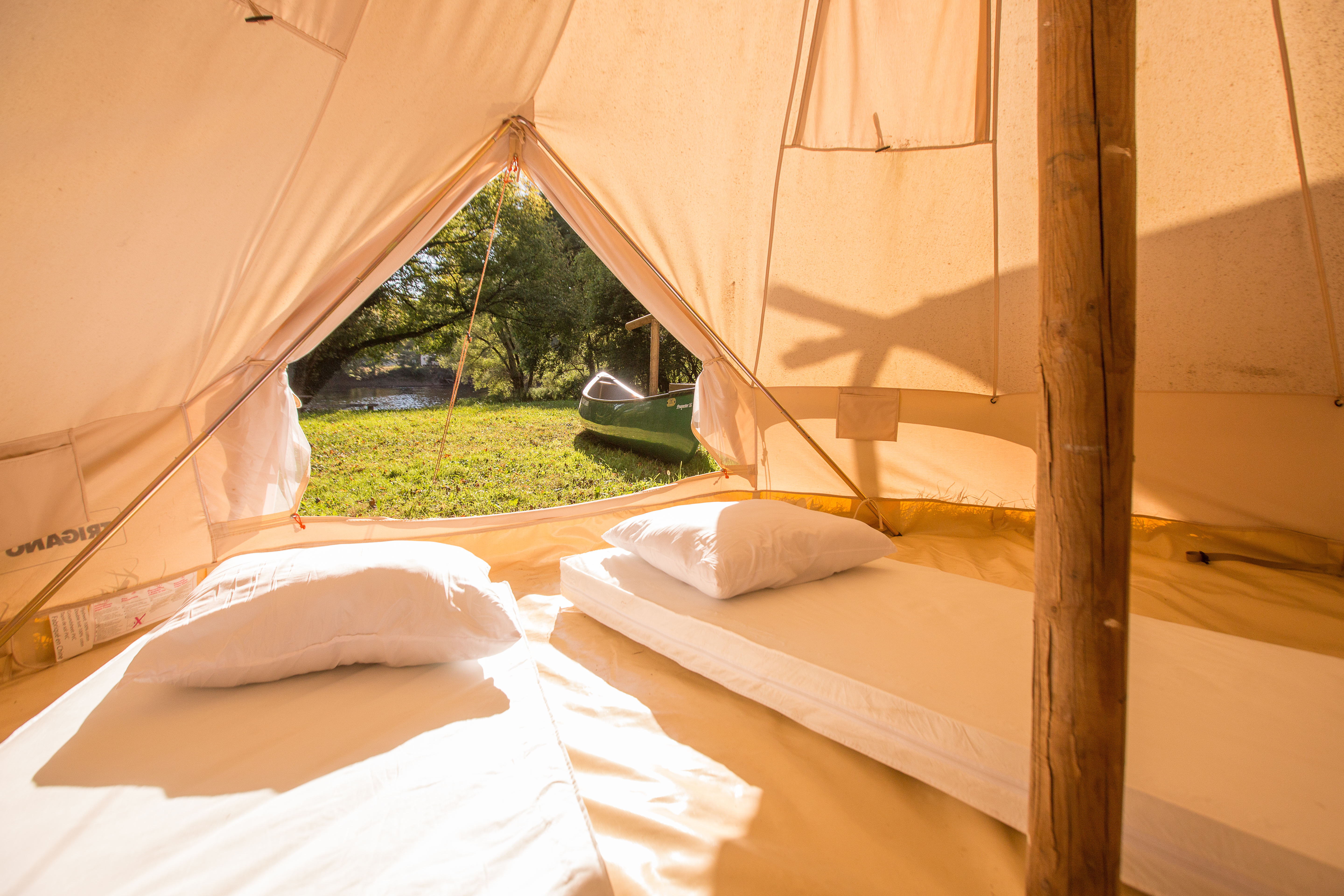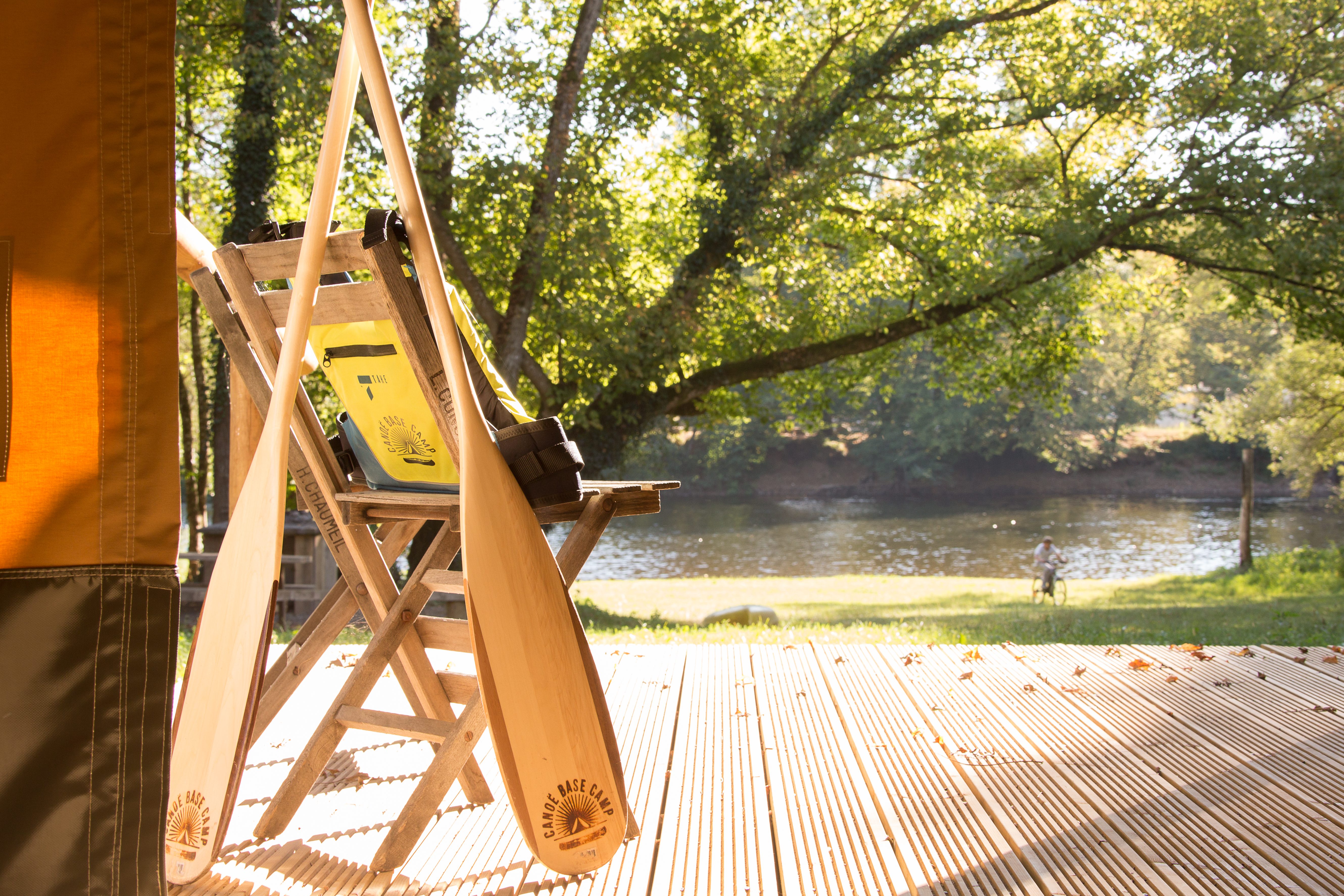 Passionnés de canoë et de la rivière Dordogne, créateurs de la Compagnie Sports Nature, nous avons imaginé un Base Camp pour vous faire partager, le temps d’un bivouac, notre idée du voyage en canoë. Nous avons choisi d’installer ce campement au bord de la rivière, dans un authentique camping avec un cadre exceptionnel près des falaises. ICI LE LUXE C’EST LA NATURE