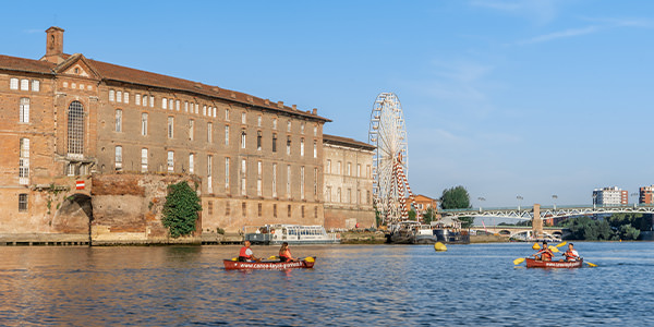 La balade en canoë kayak, convient à tous ceux qui souhaitent découvrir le centre-ville depuis l’eau et bénéficier de commentaires historiques sur le patrimoine toulousain. Les moniteurs de Granhòta sont là pour vous encadrer. Le parcours passe par le quai de Tounis, l’écluse Saint-Michel, la prairie des filtres, le pont neuf, l’hôtel Dieu ainsi que la Daurade. D’autres balades à la demi-journée ou à la journée sont proposées au départ de Portet-sur-Garonne ou de Clermont-le-Fort. Vous pourrez y découvrir la Réserve Naturelle Régionale du confluent Ariège-Garonne en canoë-kayak. Bon à savoir : – Cette activité est disponible de fin juin à octobre. – Le point de départ se fait sur le port Viguerie, dans le centre historique de Toulouse (rive gauche, à côté de l’hôtel-Dieu Saint-Jacques). – Les canoës sont des 2 places dans lesquels vous ne serez pas mouillés. – L’équipement est fourni. Important, vous devez savoir nager. – Encadrement par des moniteurs de Granhòta (équipement, briefing, mise à l’eau, surveillance). – Les enfants doivent avoir 6 ans minimum et être accompagnés par un adulte. – Cette activité est accessible pour les personnes en situation de handicap, avec un accompagnateur. Contactez-nous pour plus d’informations. – Une privatisation est également possible pour les groupes.