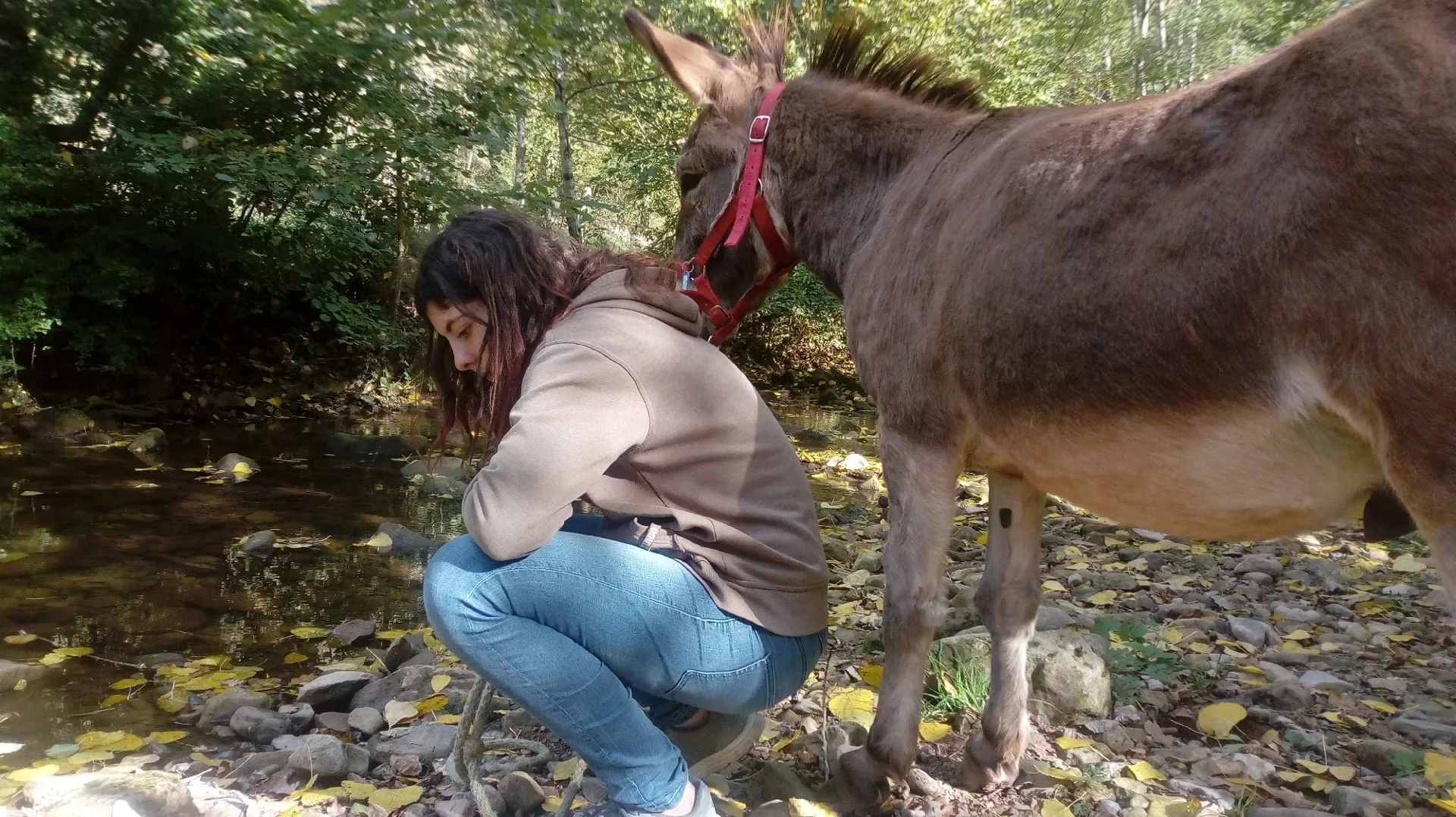 Pour les stages avec les ânes, je propose des séances de médiation animale et des randonnées afin de mieux connaître les ânes.
