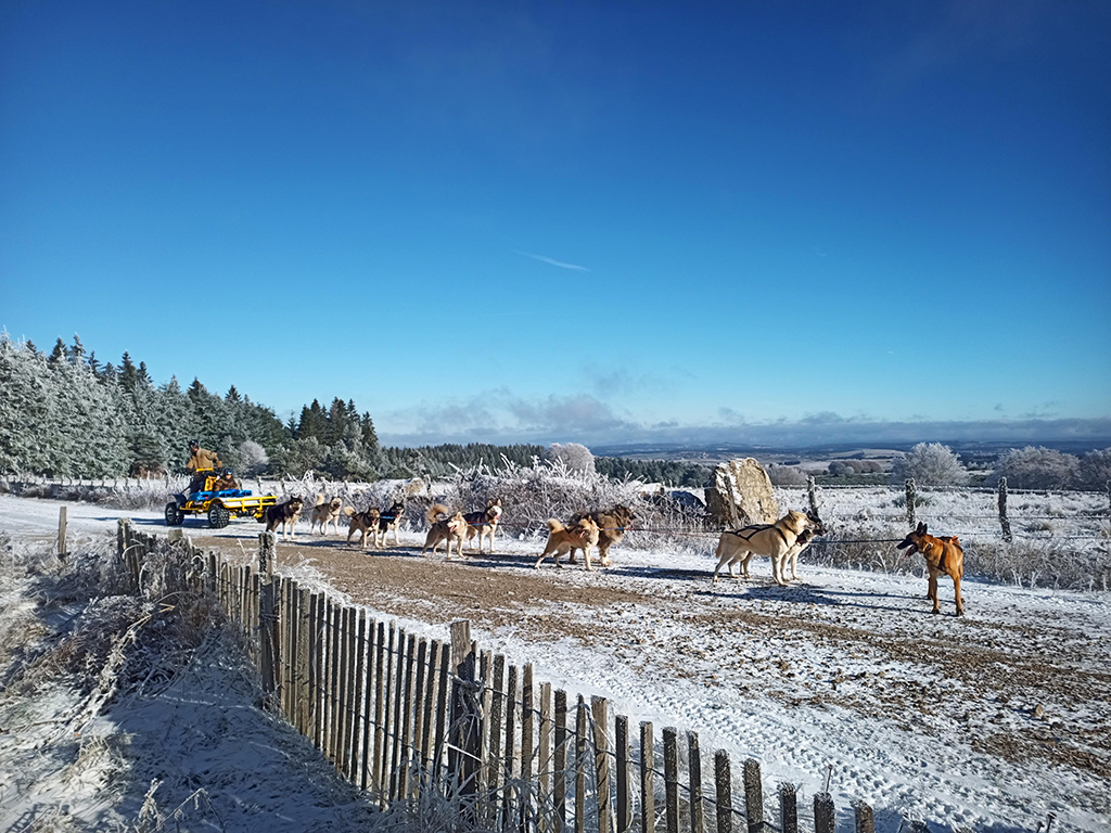 Entre chiens & loups, venez découvrir, avec LEILA’VENTURE, sur le plateau de la Margeride, un monde encore authentique et sauvage. John, ses partenaires & toute sa meute de chiens nordiques, vous ferons partager, à votre rythme, leur passion avec des moments forts en émotions, à la découverte de vous même et de l’univers de ces chiens pas comme les autres. Pour les moins sportifs, nous vous proposerons des balades assis sur un kart tracté par nos chiens et pour les plus actifs, ce sera la Cani’rando où l’on est directement relié au chien par une ceinture et une longe élastique, connexions aux chiens garanties et sensations aussi ! LEILA’VENTURE c’est aussi du tir à l’arc encadré à la Baraque des Bouviers, ainsi que Via Ferrata, escalade et Canyoning dans toute la Lozère (avec la Cazelle).