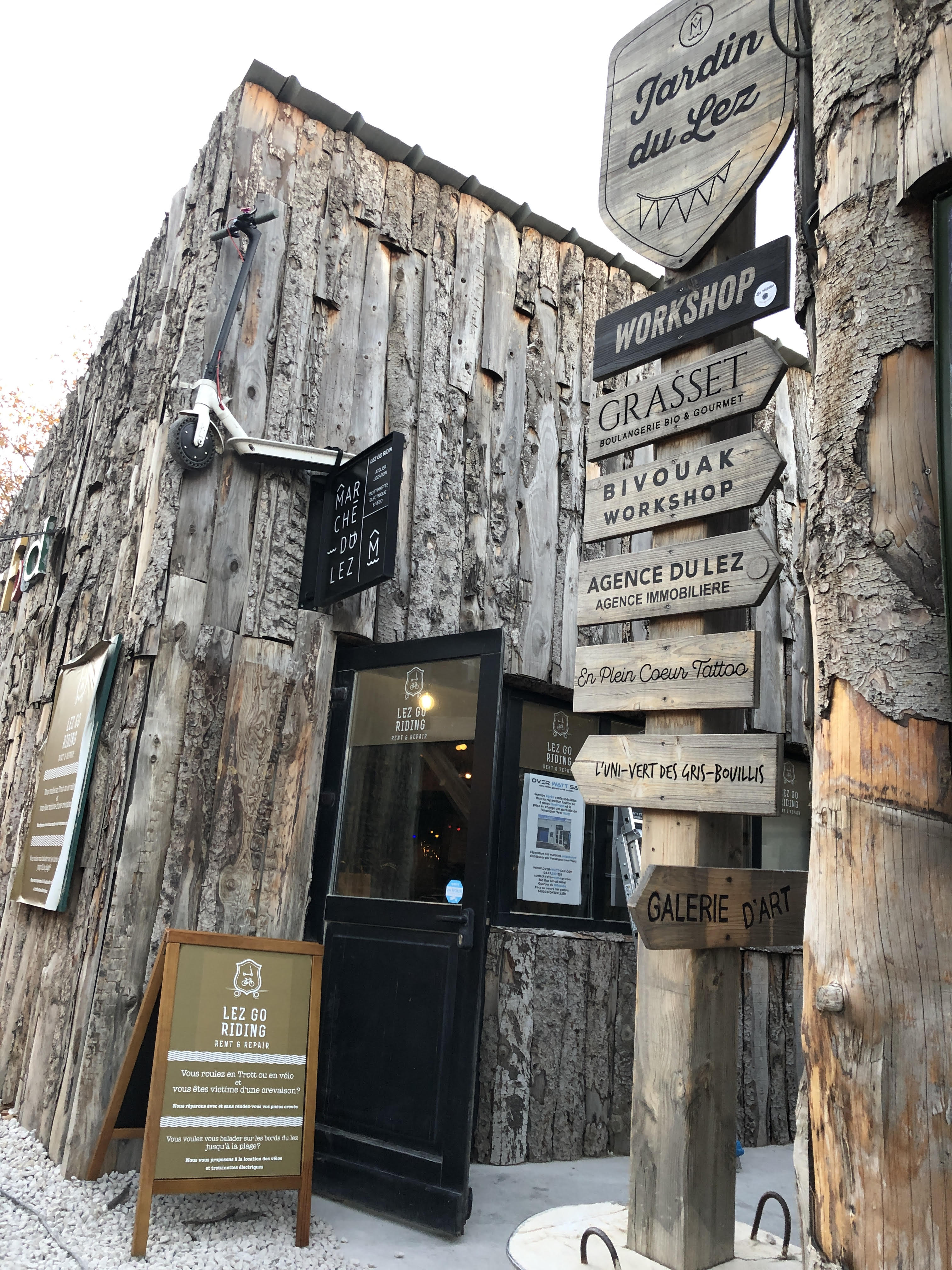 Situé en plein coeur du marché du lez, unique à Montpellier, village arty dans la ville, le lieu propose un art de vivre inspiré de Darwin à Bordeaux, LX Factory à Lisbonne : commerces, brocantes, marchés de producteurs, restaurants et food trucks, start-up… Nous vous proposons la location de trottinette électrique et de vélo électrique à l’heure. Le lieu se situe sur les bords du lez, rivière traversant Montpellier et dont l’embouchure se situe à Palavas-les-Flots et est bordée par une magnifique piste cyclable. Comptez 40 minutes pour vous y rendre. Vous aurez également la possibilité de découvrir les étangs sauvages qui bordent le littoral ou faune et flore s’y développent en toute quiétude. Vous aurez le choix également de visiter La Grande motte (Environ 1h20) ou Le Grau du Roi (1h40)