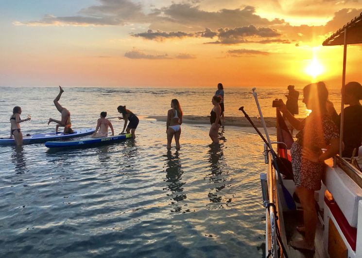 – Baignade et repas avec bouées géantes et paddles