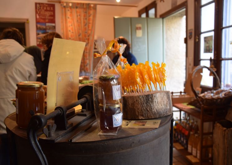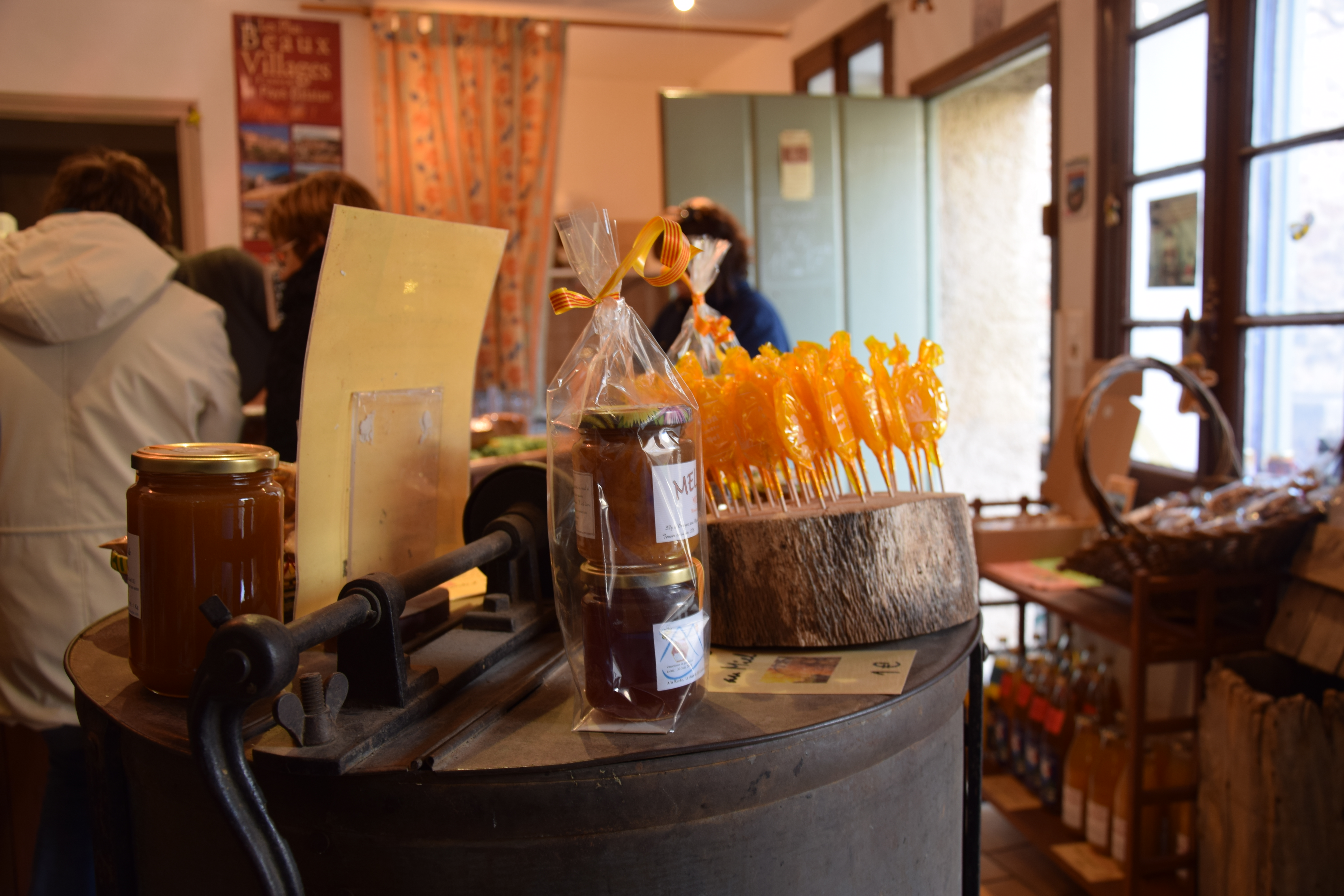 À la Ruche vous propose de nombreux miels récoltés dans notre département, ainsi qu’une gamme variée de produits dérivés élaborés par nos soins, comme notre nougatine au miel, nos confitures au miel, notre vinaigre et bien d’autres recettes gourmandes à base de miel. Notre pain d’épices préparé et cuit dans notre boutique ainsi que notre hydromel ont reçu de nombreuses médailles au concours régional agricole. N’hésitez pas à nous rendre visite à Castelnou, village médiéval ayant gardé toute son authenticité. Pour trouver la boutique, laissez vous guider par les odeurs de pain d’épices !