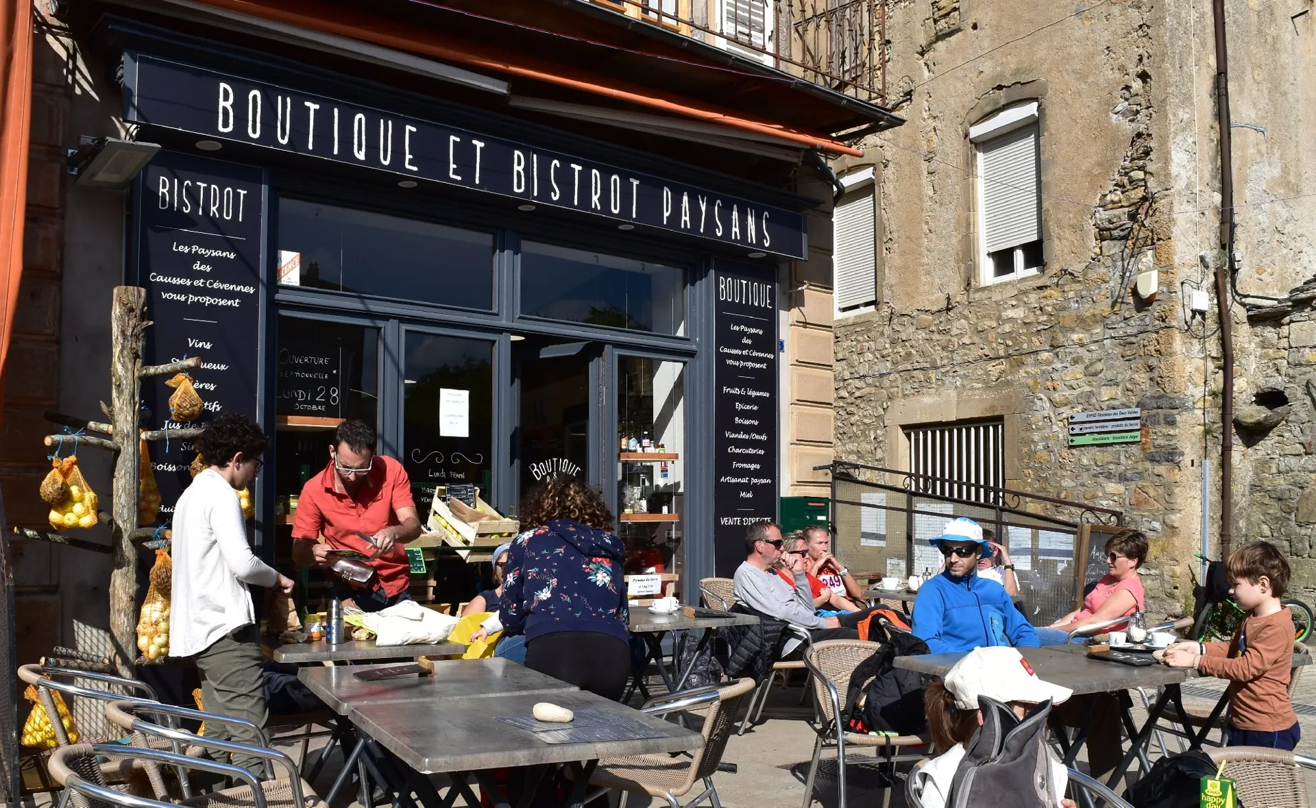 C’est dans l’ancien Grand Café du village que s’est regroupée une quinzaine de paysans du coin, des Causses et Cévennes alentours, pour proposer à la vente les produits de leurs exploitations, en tenant la boutique à tour de rôle.