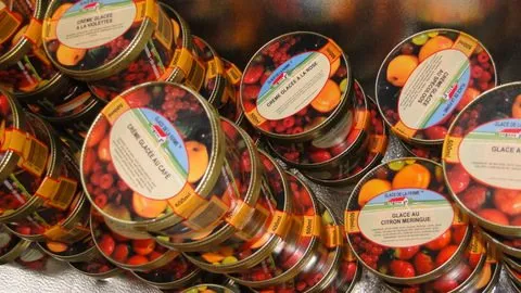 Les glaces existent en petits pots individuels, et en bacs de 500 ml. Elle propose également des desserts glacés sur commande …