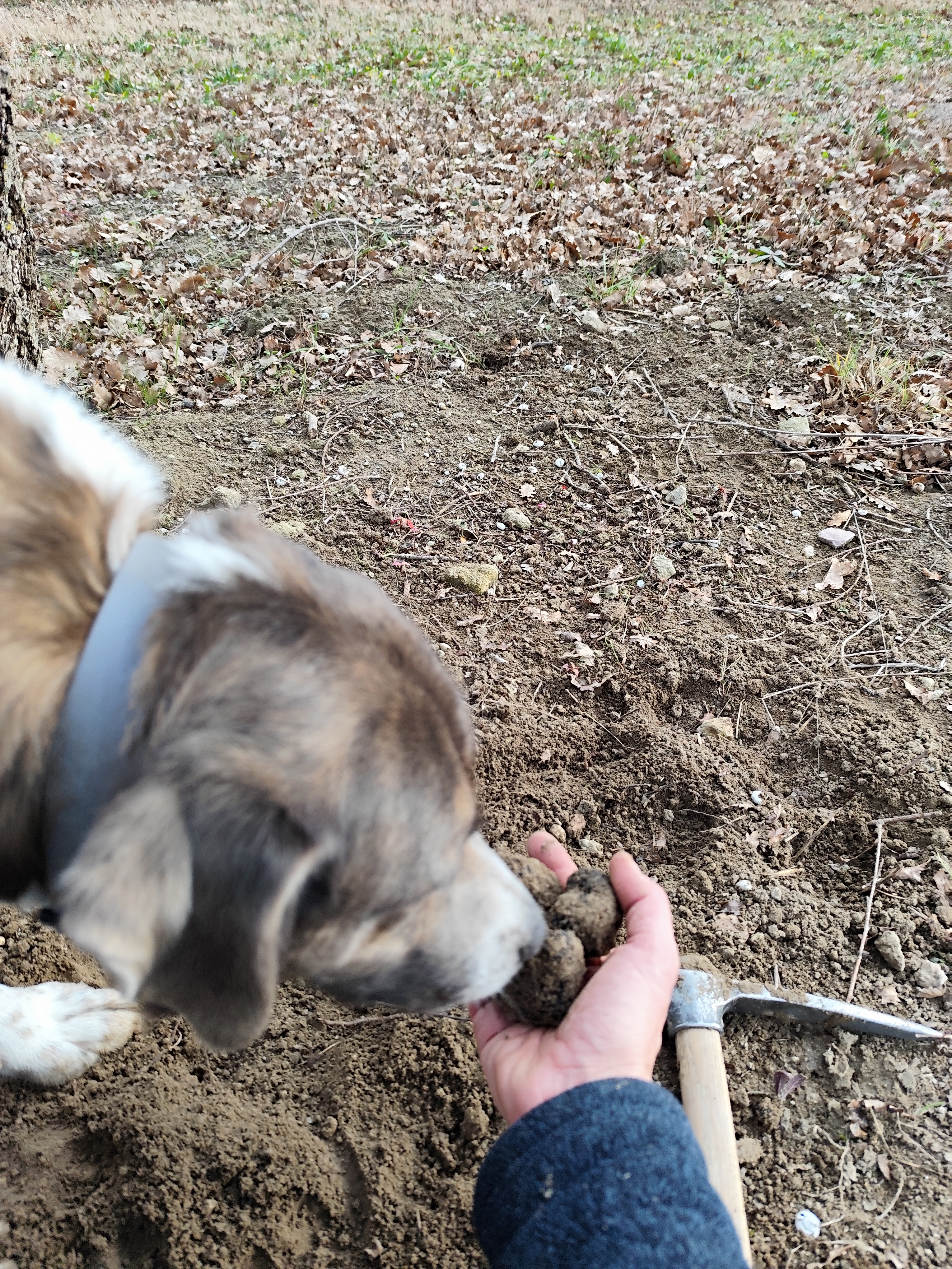 Yoan Saunier, trufficulteur et oléiculteur, a planté des chênes truffiers et cave avec son chien sur l’ensemble du domaine.