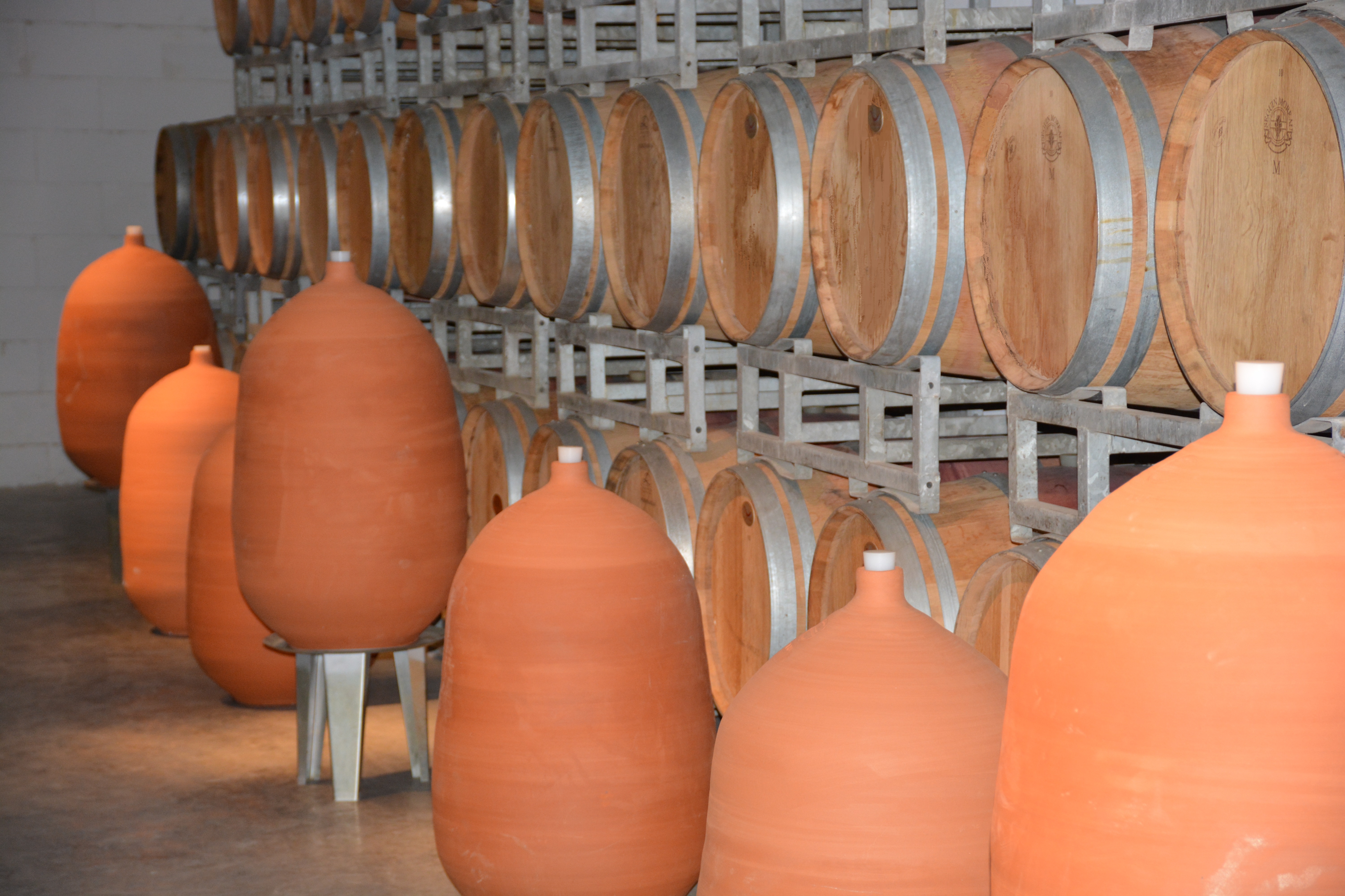 La démarche du domaine concernant les amphores ne consiste pas à les utiliser comme contenant de transport, mais à utiliser la propriété naturelle de la perméabilité de l’argile cuite au cours de l’élevage du vin. La micro-oxydation est déjà bien utilisée dans les élevages en fûts de chêne. Elle permet d’arrondir les tannins et de donner de la complexité aux grandes cuvées. De part sa forme, la nature de l’assemblage de ses terres, la température de cuisson, le comportement de l’amphore d’élevage envers le vin s’avère différent. De part sa nature d’argile, l’amphore est neutre en goût et participera à l’expression puissante des arômes subtils du vin, à la légère baisse d’acidité ainsi qu’au développement d’une structure plus riche et plus ample.