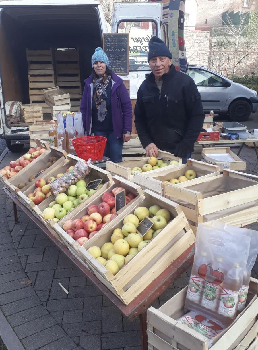 Christian, Josy et Nicolas produisent des fruits en agriculture raisonnée. A la saison nous vendons à notre boutique une dizaine de variétés de pommes, des poires, jus de pomme, jus de poire et pétillant de pomme.