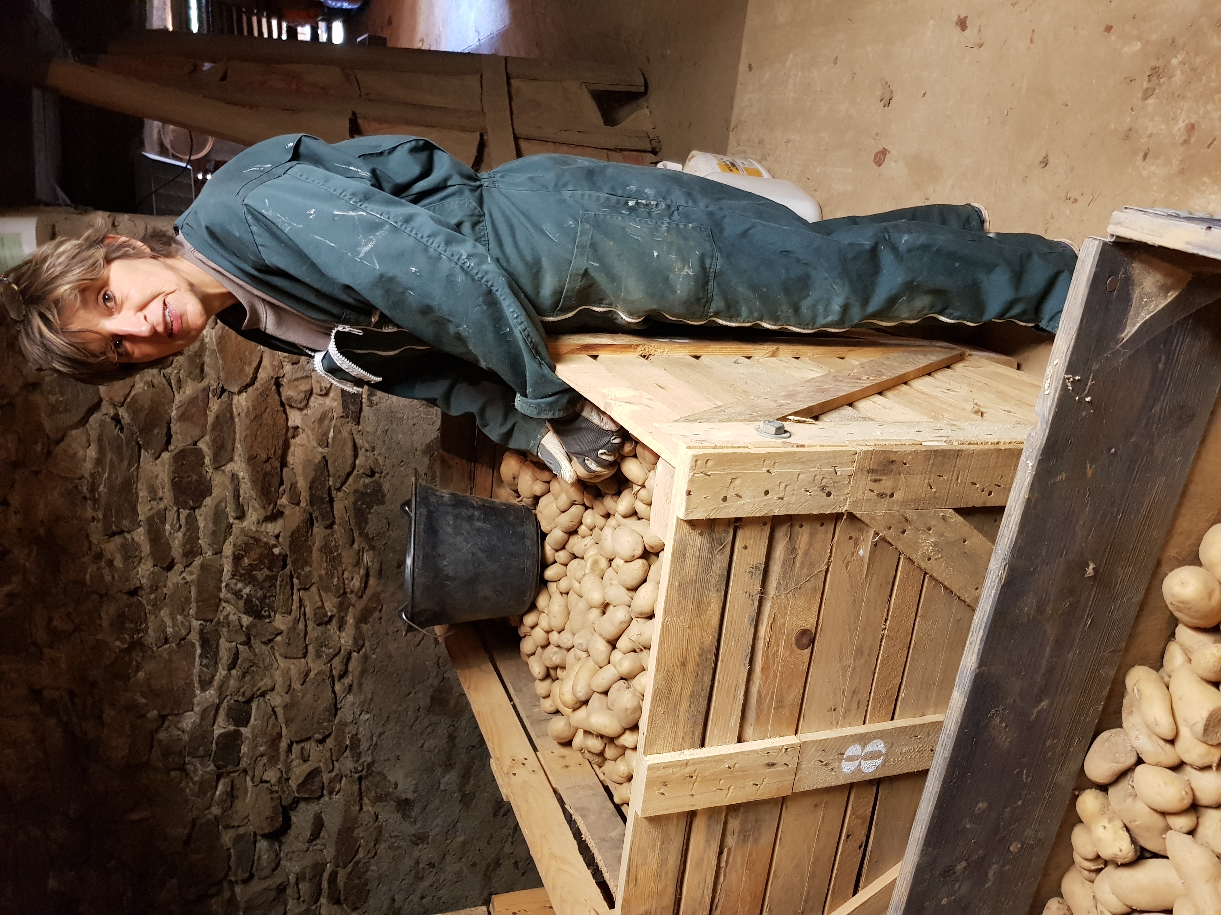 Culture de pommes de terre et de blé panifiable, transformé en farine. Dans notre ferme en Agriculture Biologique, nous vous proposons des pommes de terre et de la farine de blé moulu à la meule de pierre en vente directe.