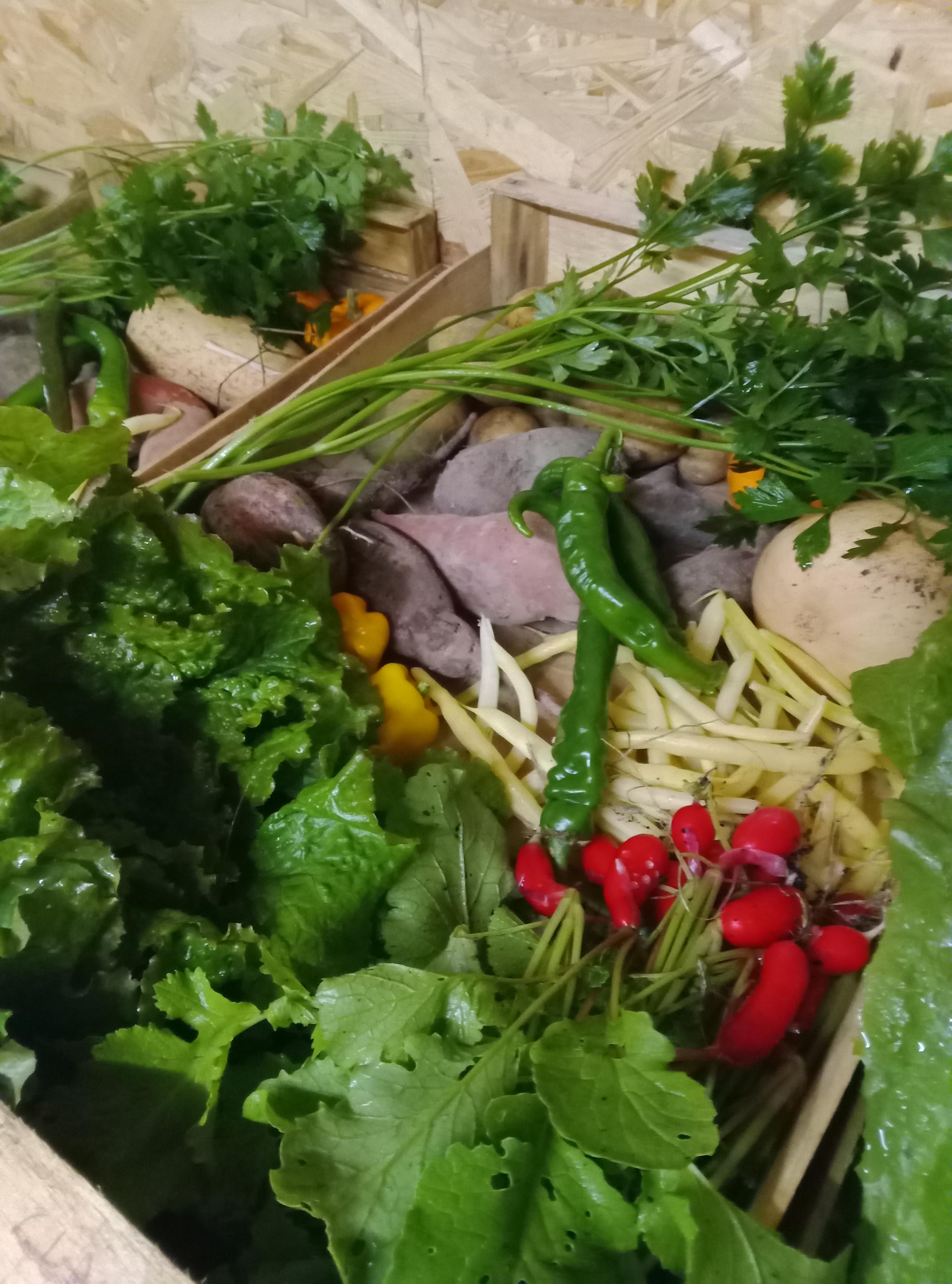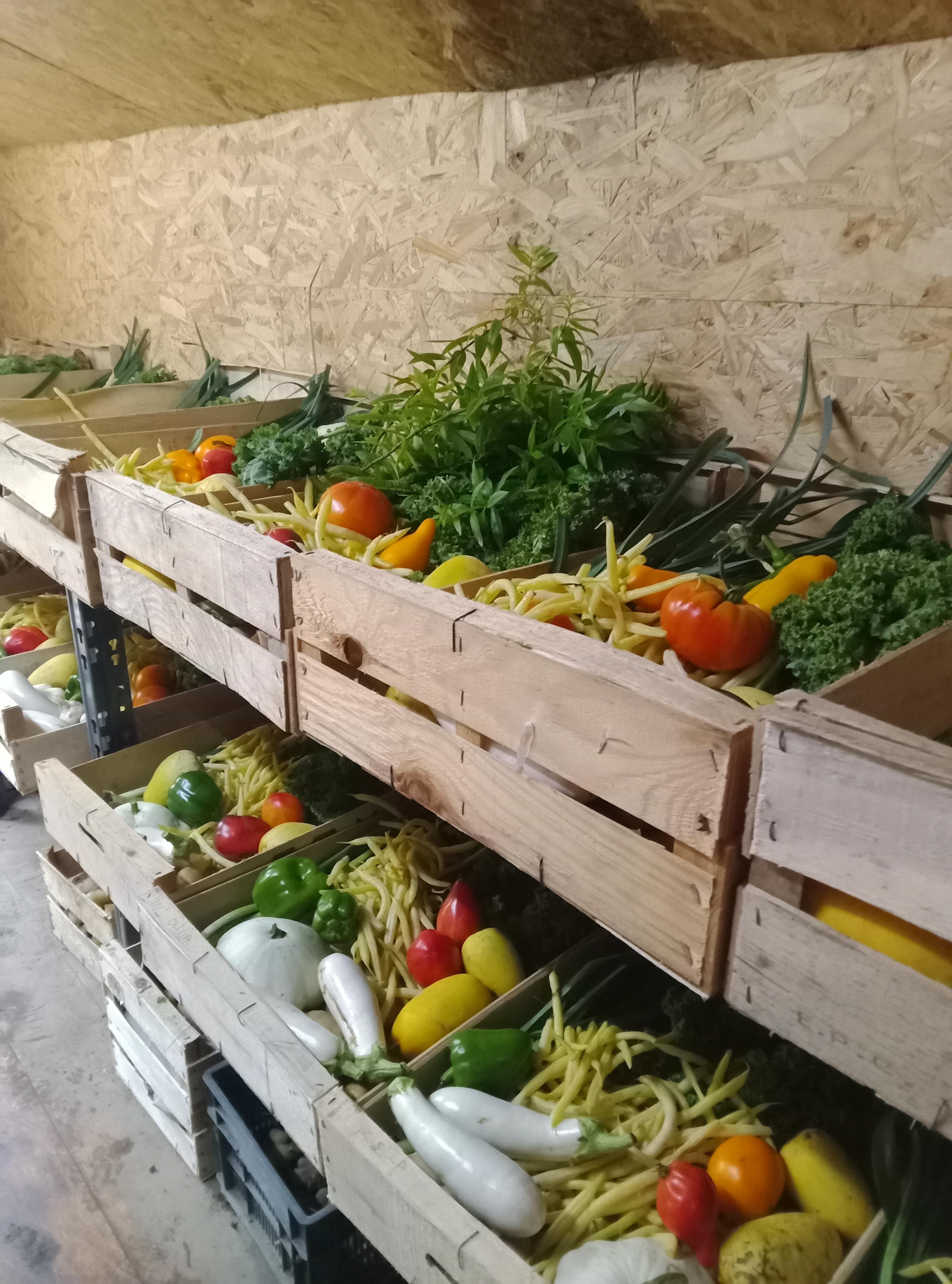 La vente à la ferme se fait essentiellement sur commande : chaque lundi nous envoyons la liste des légumes disponibles en fin de semaine, il n’y a plus qu’à choisir.