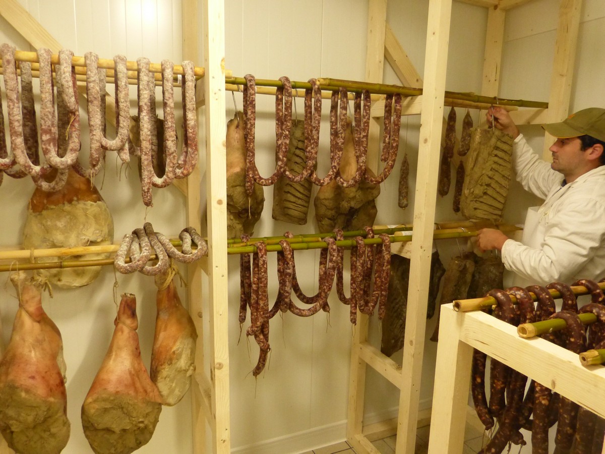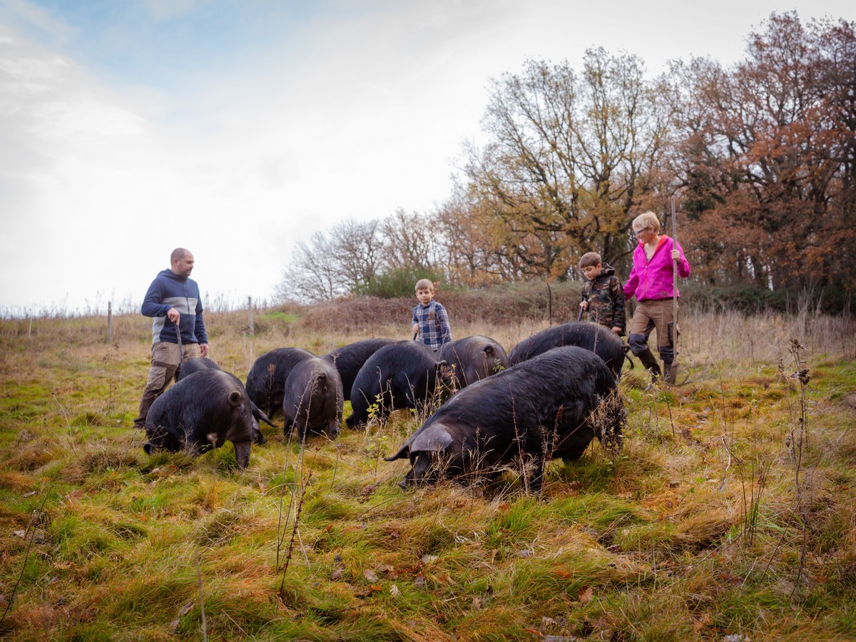 La Ferme de la Bracadelle est située à Labécède Lauragais à 5 min de Revel et à 10 min de Castelnaudary. Nous produisons du porc noir Gascon élevées en plein air. Nous diversifions notre production pour proposer à notre clientèle des nouveaux produits. Nous venons de lancer tout récemment une gamme de savon pour le corps et de savon vaisselle au saindoux, des biscuits sucrés et salés au saindoux. Petit, jusqu’à environ 3 mois, nous les gardons dans un parc à proximité de notre habitation de façon à pouvoir les surveiller facilement. Dés l’âge de 3 mois nous les transvasons dans les autres parcs. Nous avons 4 parcs regroupés sur 10 Ha. Les parcs sont composés de prairie et de beaucoup de bois. Il y a de nombreux châtaigniers et chênes blanc, ce qui rend leur viande encore plus savoureuse ! C’est à partir de 12 mois et environ 120 kg que nous commençons à abattre nos cochons (contre 5-6 mois en élevage intensif). Nous produisons nous même les céréales pour nos cochons : du triticale, de l’orge et prochainement de la féverole. Nous nourrissons nos porcs deux fois par jour à hauteur de 1 kilo d’aliment par jour et par cochon. Nous vous accueillions dans notre charmant point de vente à la ferme, labellisé Pays Cathare, tous les vendredis de 14h à 18h30, où nous vous proposons notre viande fraiche, charcuterie et nos produits transformés. Nous sommes sur le marché de Revel le samedi matin.