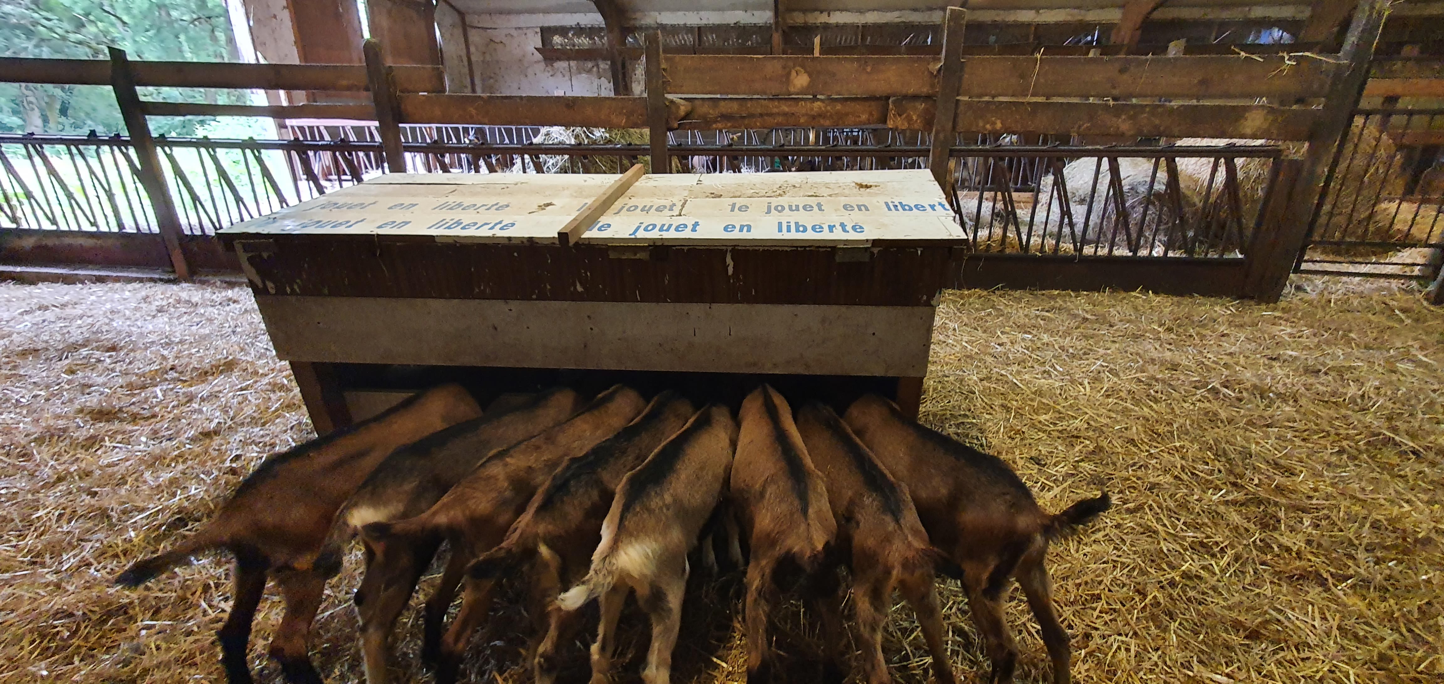 Bienvenue dans notre ferme des Forges pour partager avec nous la fabrication du Rocamadour AOP. Notre exploitation se situe à La Forge, un très joli hameau de la vallée de la Borrèze proche de Souillac. Notre cheptel est de 150 chèvres. Nous transformons et vendons toute notre production de fromage en direct à la ferme et sur le marché de Souillac… Nos chèvres sont nourries avec du foin de luzerne cultivée sur notre prairie naturelle, et d’aliment fabriqué à partir de nos céréales et auquel est ajouté du soja garanti sans OGM. Nous avons 2 périodes de mises bas, en octobre et en mars ce qui nous permet d’avoir du lait toute l’année. Nous fabriquons aussi d’autres différents fromages de chèvres moulés à la louche.