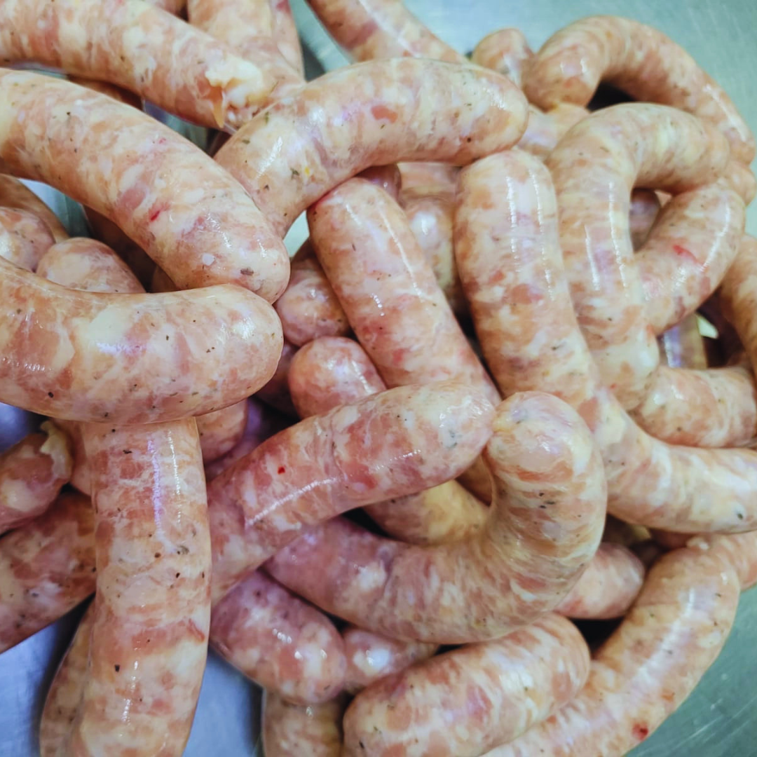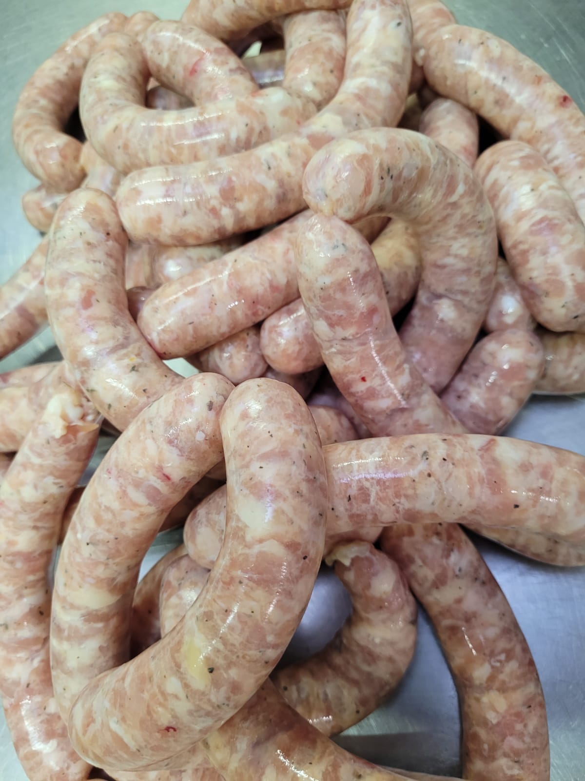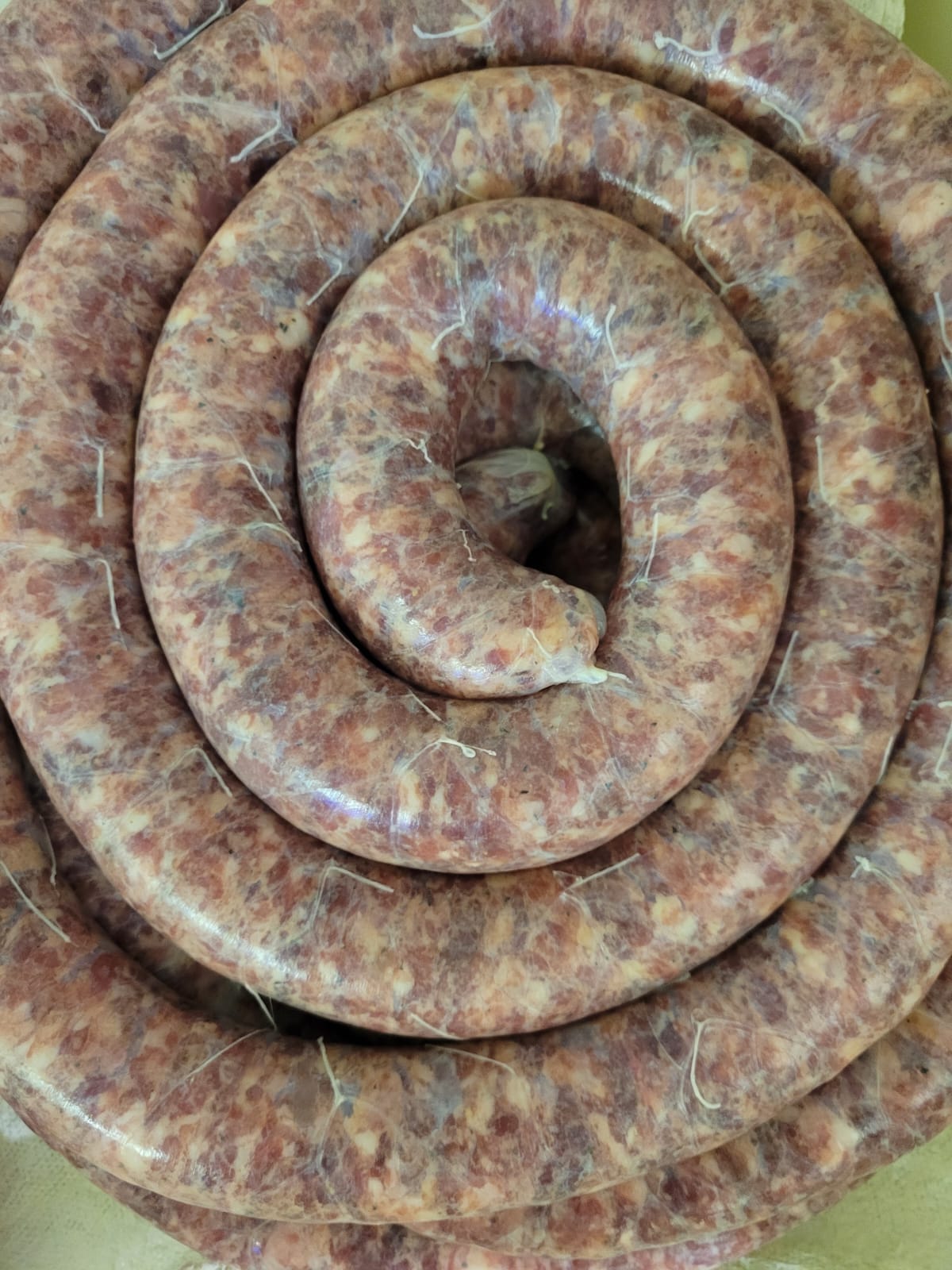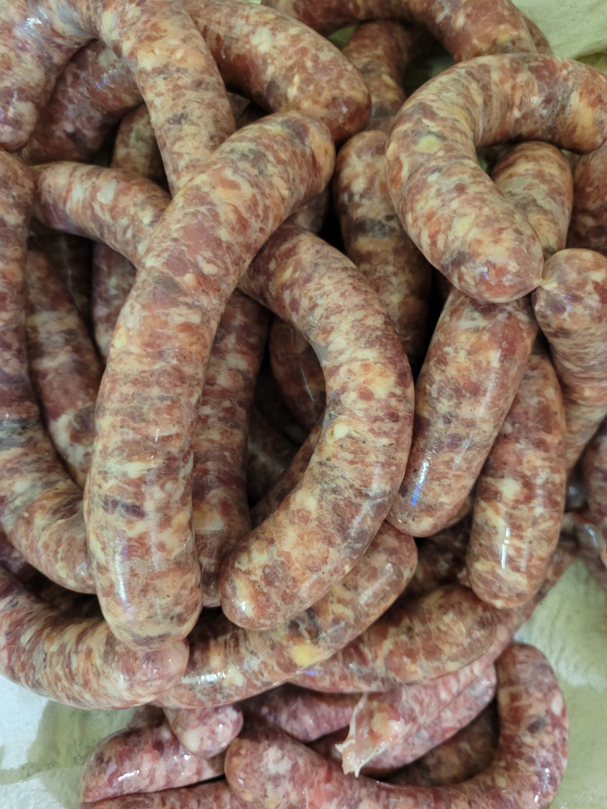 Toutes nos préparations, notamment saucisses, pâtés, galantines, cous farcis, etc, sont élaborées sans aucun additif, liant, conservateur, sel nitrité…