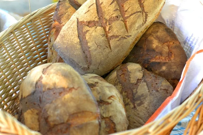 Sarah et Ben boulangent ensuite leurs farines, au levain naturel et fermentation longue, et cuisent les pâtons dans le four à bois de la ferme. Ils confectionnent ainsi plusieurs sortes de pains, des pizzas fermières, des fougasses à l’ail et aux herbes, des « étoiles de Nuces », petites spécialités sucrées de leur invention ou encore des mousses de pois chiche à l’estragon.