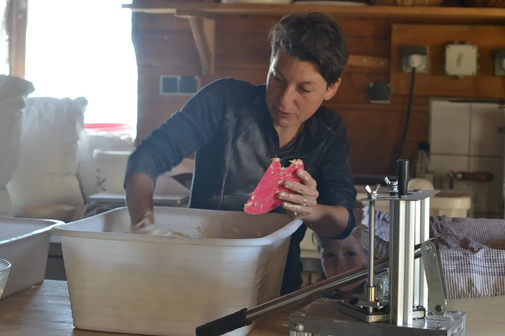 A la ferme Moulini, Sarah et Ben cultivent des céréales paysannes, les transforment en farine de meules de pierres et les boulangent à la main au levain naturel pour en faire du pain, des pizzas fermières, des fougasses et des spécialités sucrées.