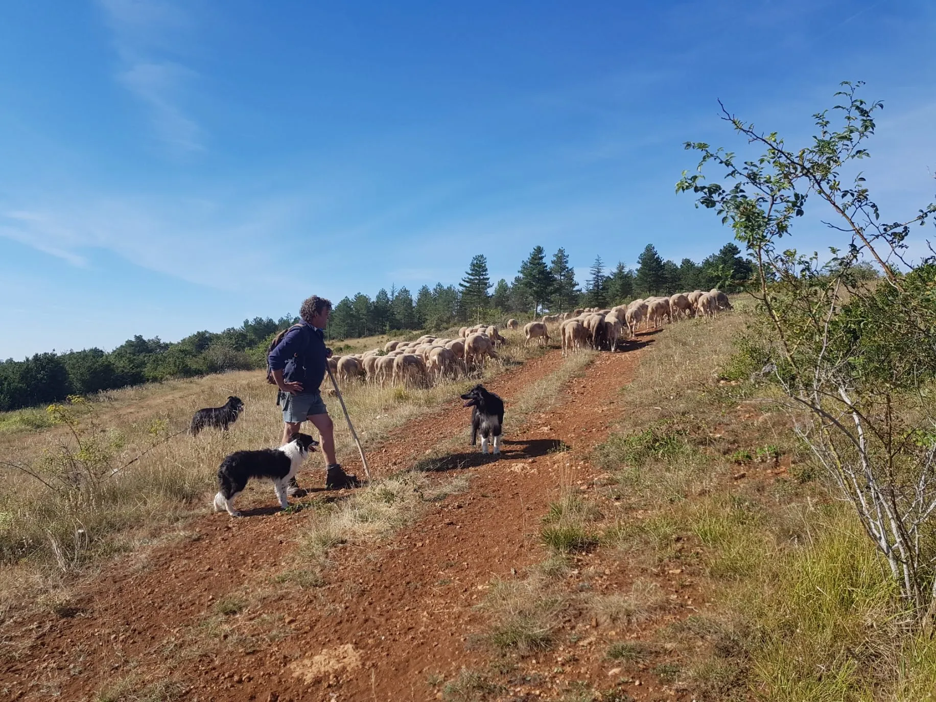 Pour correspondre au pastoralisme, depuis 2012 nous transhumons le troupeau sur une estive communale au-dessus du village de Roquefort pendant 3 mois sous la surveillance du berger.