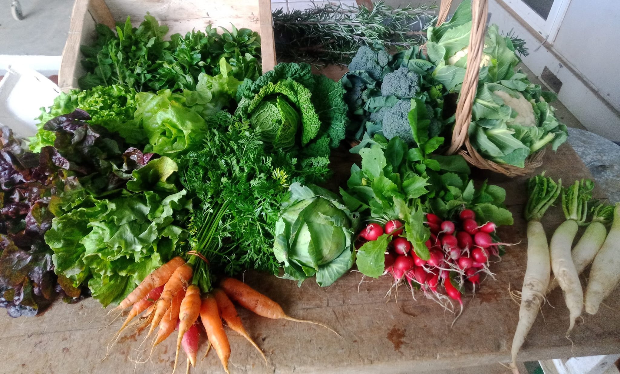 Sandie et Manon cultivent sur sol vivants sans travail du sol, elles proposent fruits et légumes de saison, œufs, céréales et conserverie, le tout en bio.
