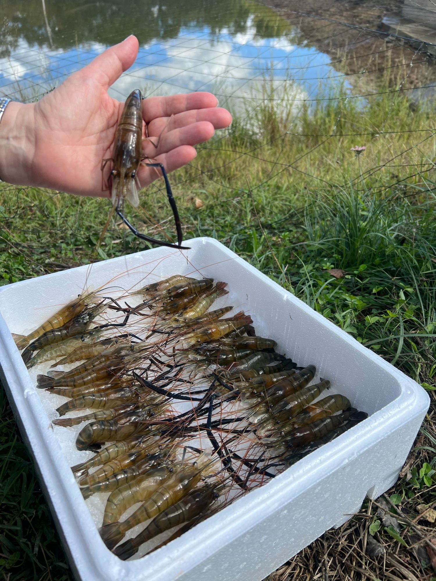 Les gambas sont élevées en faible densité dans des bassins en terre, nourries grâce à la productivité naturelle des étangs et complétées par des tourteaux de tournesols cultivés à proximité. En complément, l’exploitation propose également des truites arc-en-ciel, affinées dans de vastes étangs l’hiver, renforçant l’offre locale en produits aquacoles de qualité. Ce mode d’élevage semi-extensif garantit une qualité gustative exceptionnelle et respecte l’environnement.
