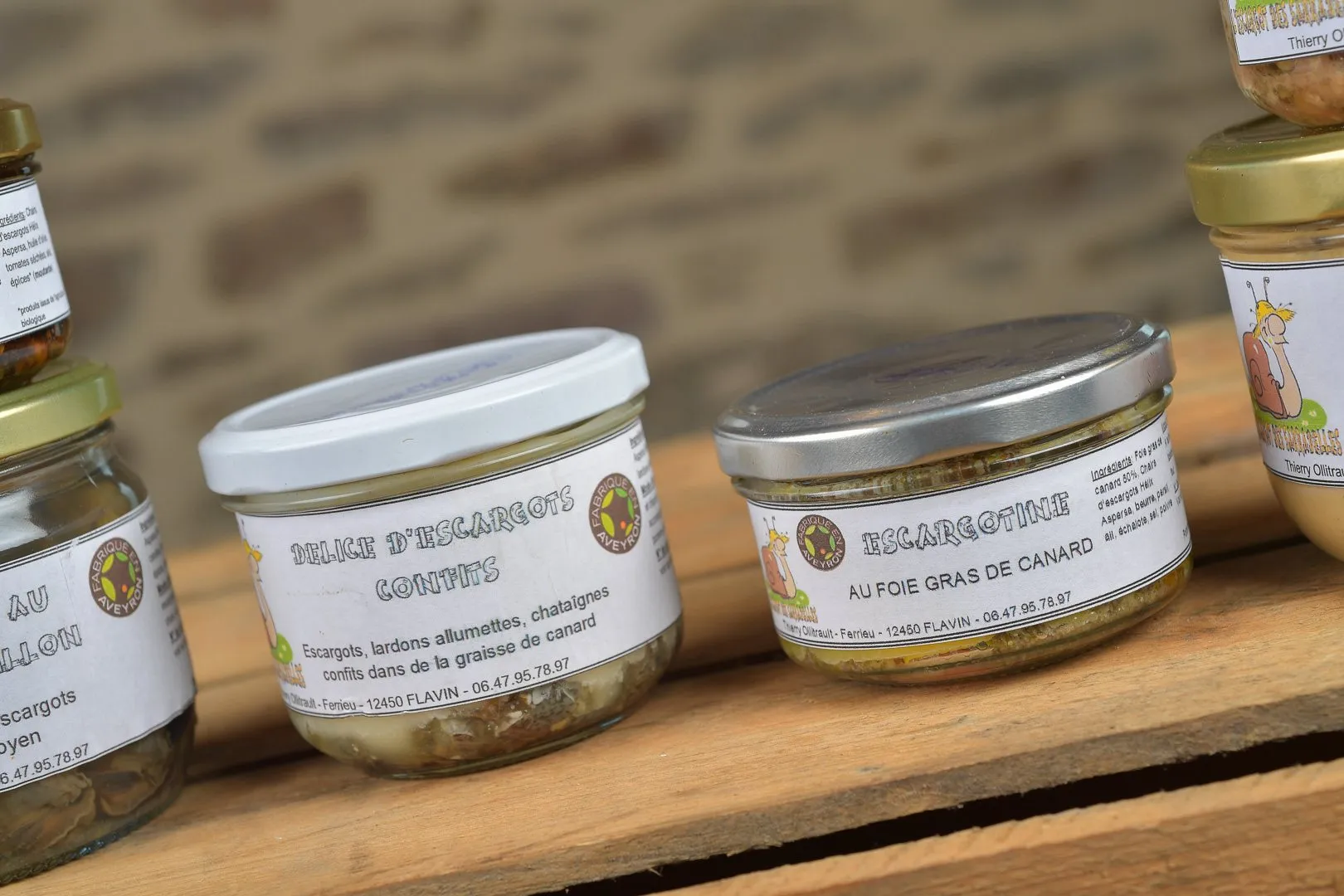 Dans le hameau de Ferrieu entre Flavin et Pont de Salars, Thierry a installé son parc d’élevage d’escargots en gros gris et petits gris. Il les fait naître, les élève, les transforme et les commercialise. Vente à la ferme sur rendez-vous.