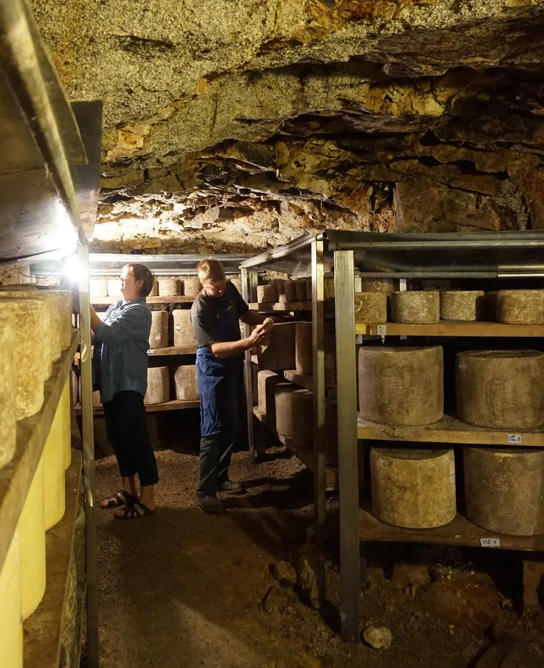 Vente de Laguiole fermier AOP (fromage au lait de vache, cru et entier) produit et affiné sur place dans une cave naturelle creusée sous la roche et autres produits issus de la ferme.