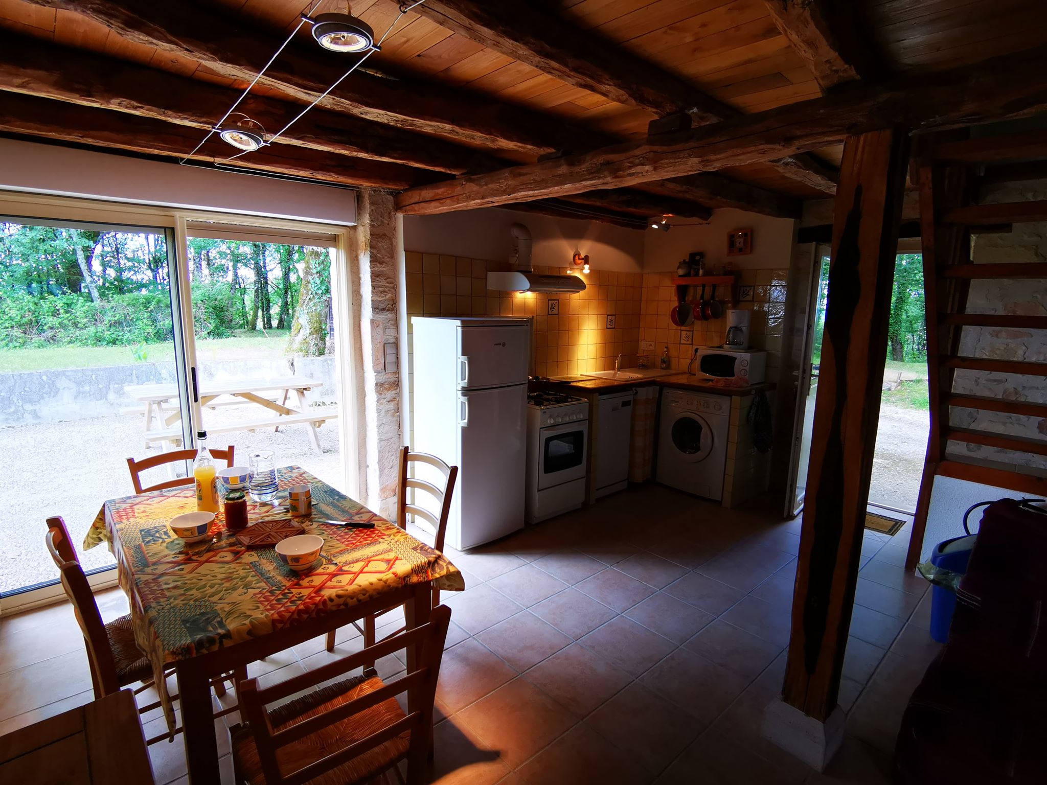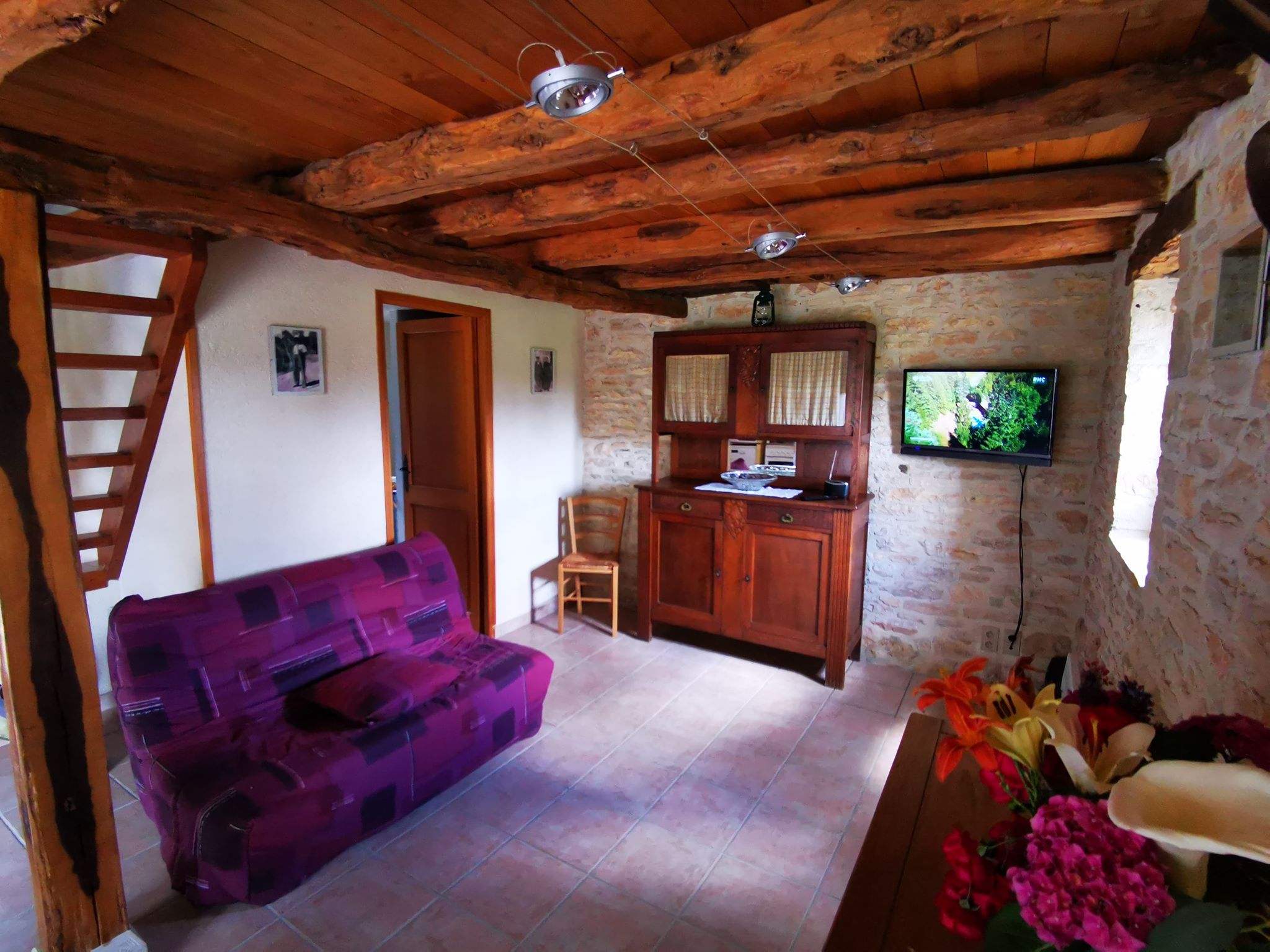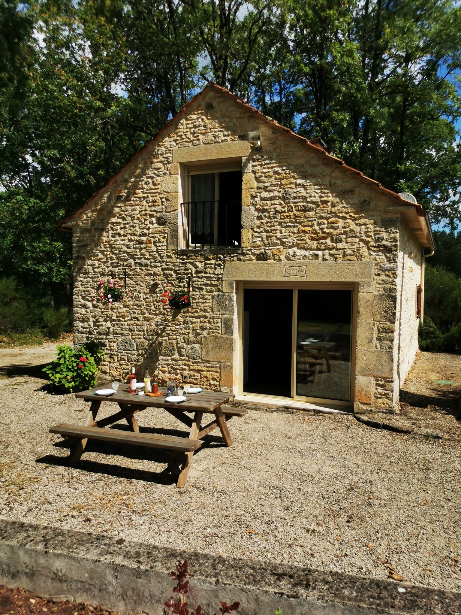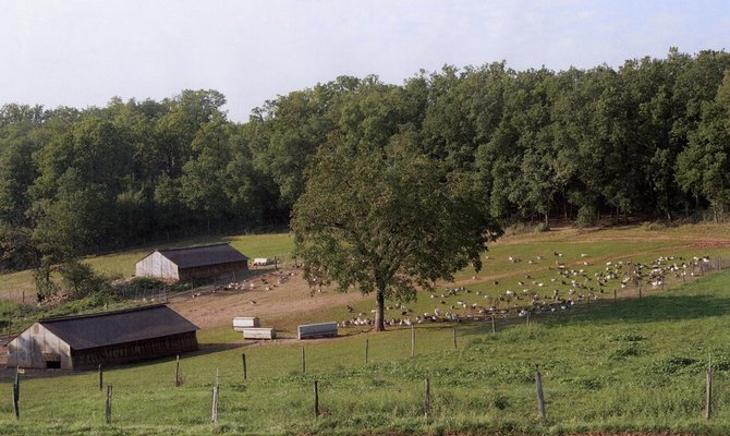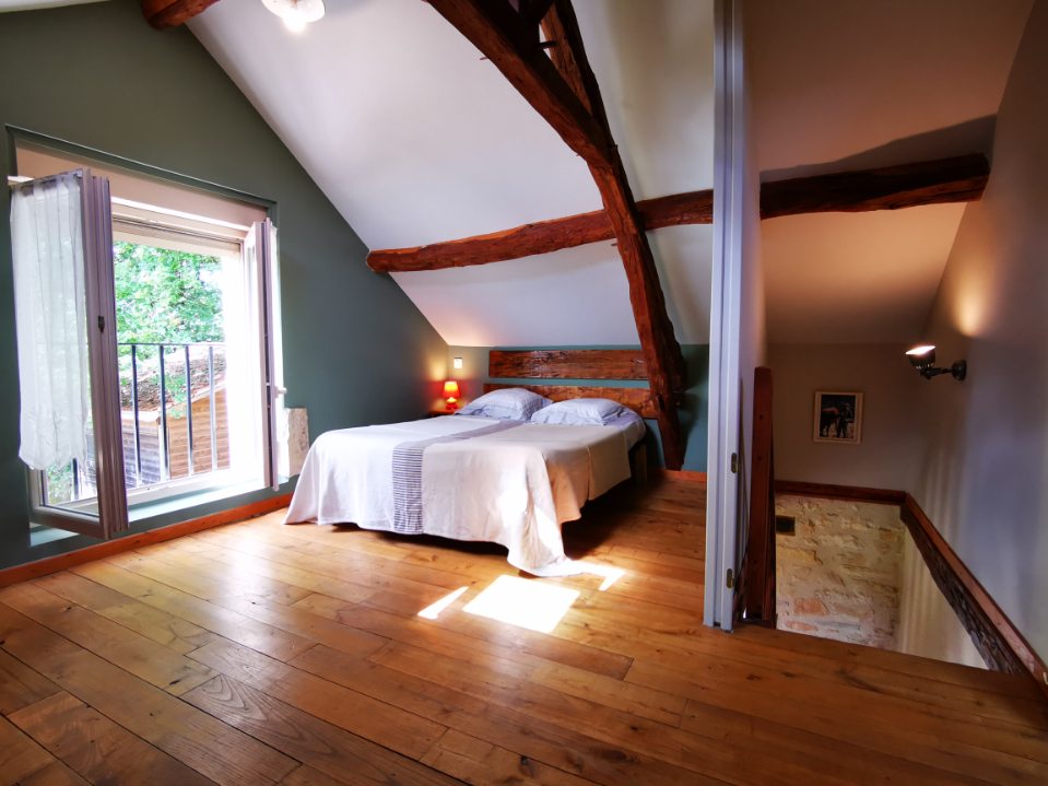Ancienne grange rénovée, au milieu d’un terrain boisé de 1400 m2. Cultures fourragères, céréales. Elevage de boeufs Aubrac et Gascon AB, volailles, abattus, transformés et découpés à la ferme, foie gras de canard.
