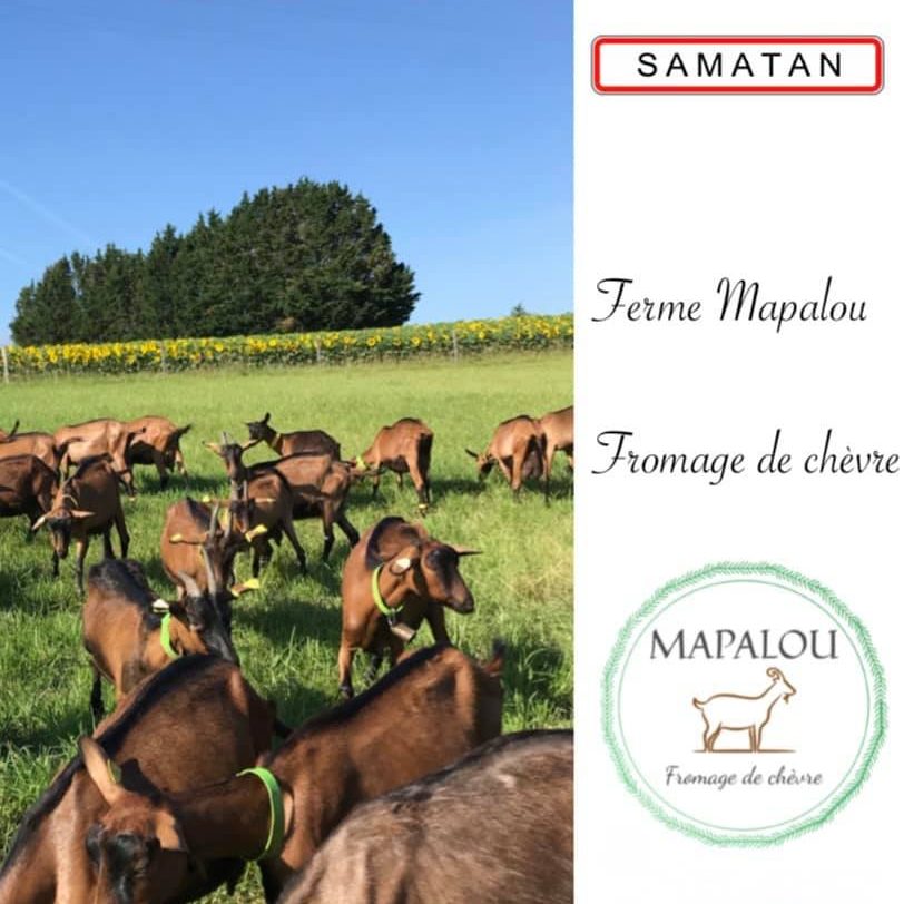 La ferme Mapalou à Samatan s’articule autour de l’élevage d’une trentaine de chèvres pour la fabrication de fromages. Mapalou propose en vente directe des buches, des palets, des cabecous, des crottins en frais, demi-frais, affinés.
