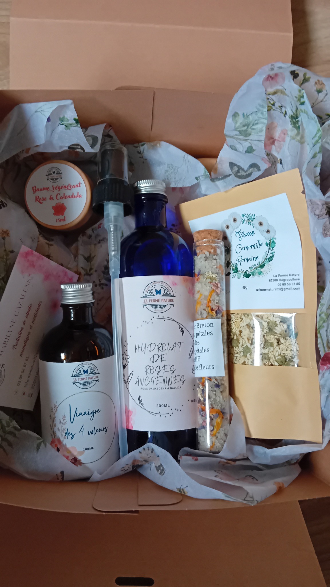 J’ai le plaisir de vous proposer des produits 100% naturels, sans additif et sans conservateur. C’est sur 2 hectares que je cueille ou produits mes plantes. C’est une petite surface où chaque transformation est faite en conscience et dans le bon sens paysan.