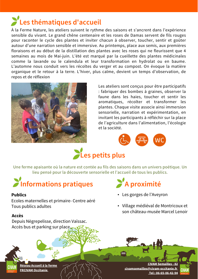 Ferme située sur la commune de Nègrepelisse, 2 hectares avec jeune verger, haie, mare, rosiers de Damas et Provins et plantes médicinales.