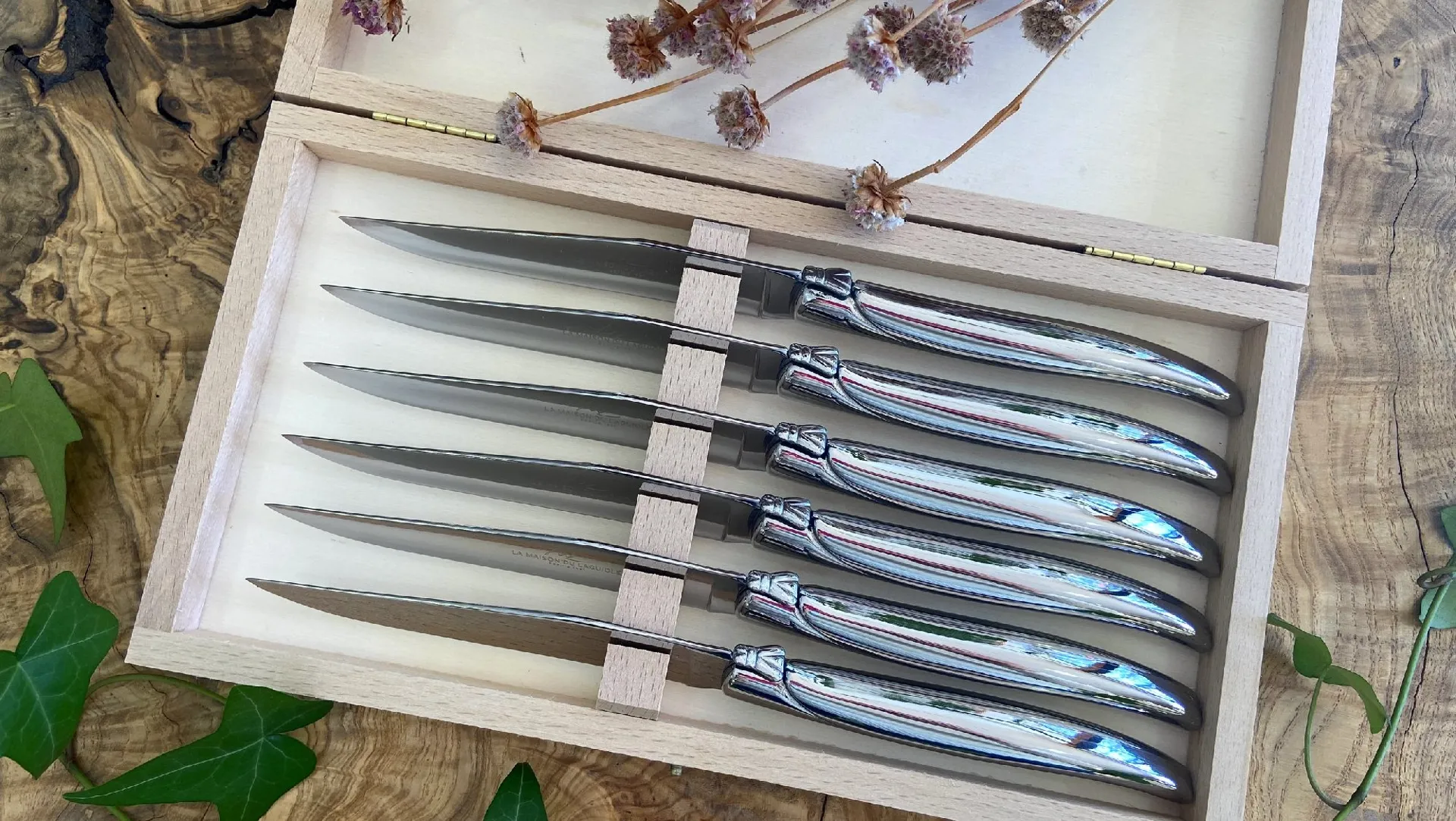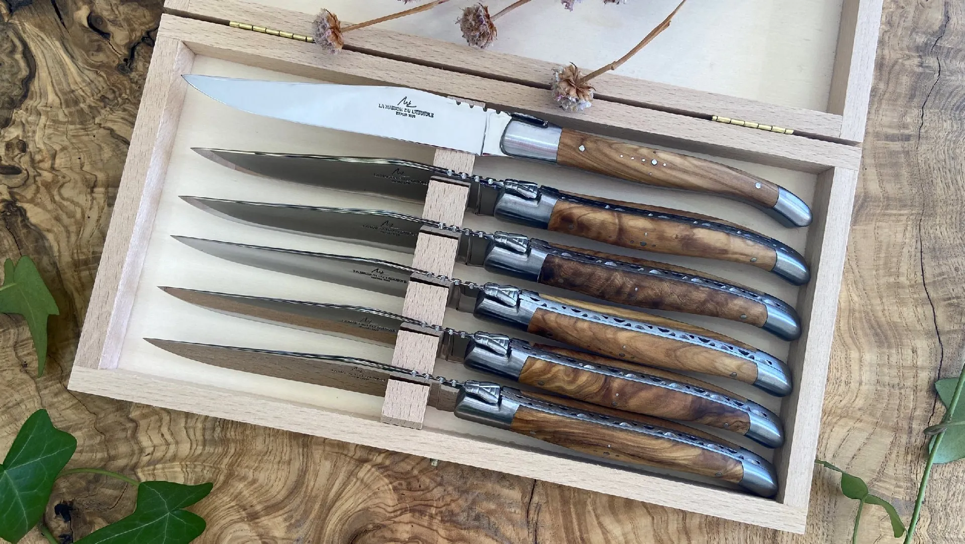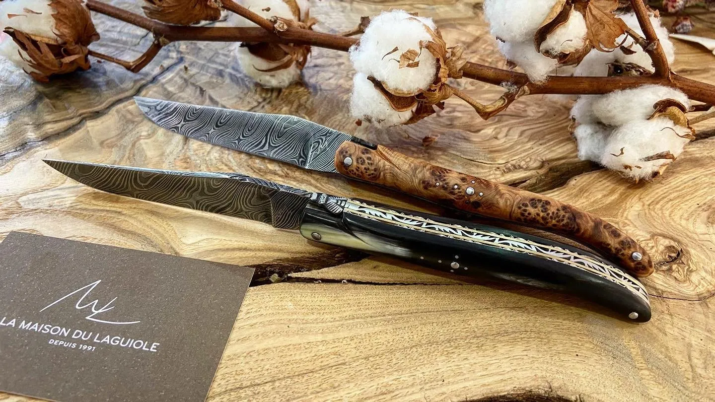 La coutellerie Artisanale La Maison du Laguiole, vous accueille dans un cadre chaleureux et vous fera découvrir son panel de couteaux Laguiole pliants et sa gamme Laguiole Art de la table réalisés avec des matériaux naturels de la région Occitanie (bois, corne de vache Aubrac, bois de Cerf…).