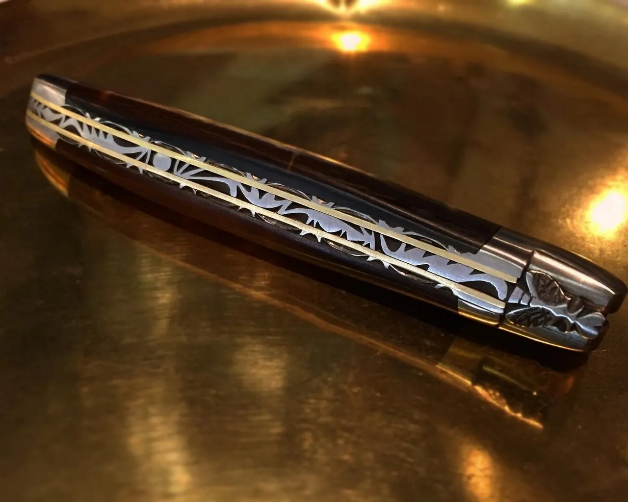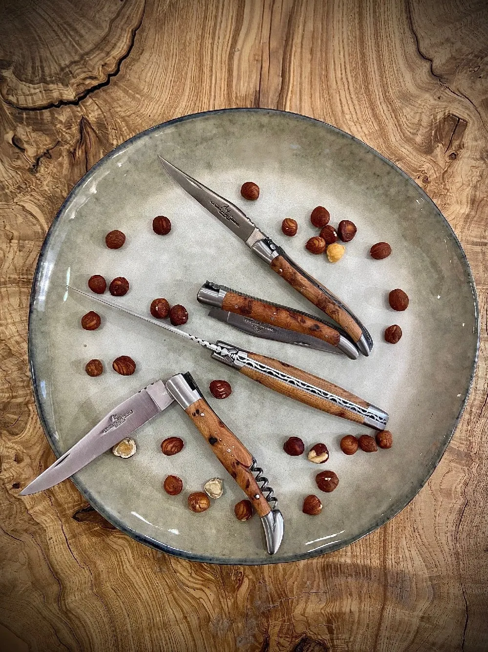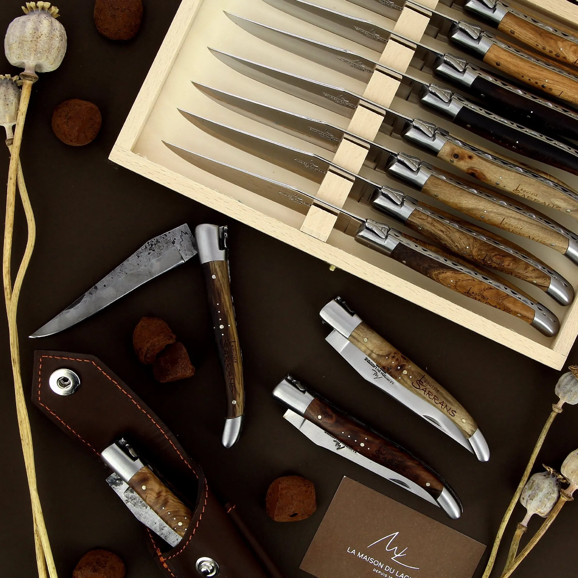 Vous trouverez également une exclusivité, la série limitée Laguiole Sarrans. Des couteaux réalisés avec des bois fossiles (chêne, frêne, sorbier…) immergés 80 ans dans les eaux du barrage de Sarrans (Aveyron).