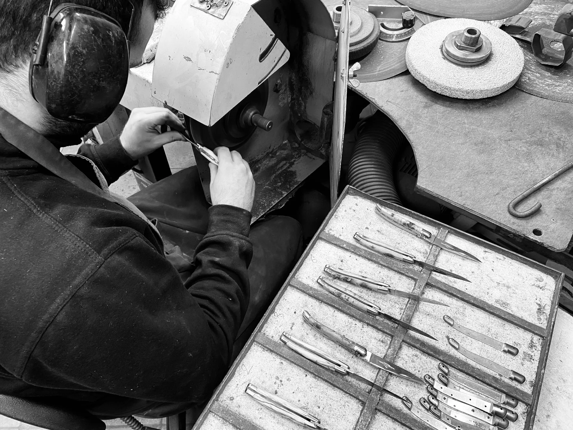 Venez découvrir notre savoir-faire au coeur de notre atelier, le temps d’une visite de 30 minutes. (Visite gratuite) Vous apprendrez l’histoire du couteau de Laguiole, les pièces qui le composent et les techniques de fabrication, avant d’assister à une démonstration.