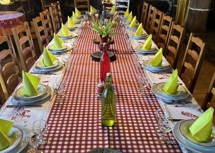 Florence a repris cette ferme familiale en 1992 où traditionnellement l’on élevait des vaches à viande de race Aubrac sur ce versant sud du Mont-Lozère à plus de 1000m d’altitude située au cœur du Parc National des Cévennes. Découvrez l’authenticité d’un restaurant à la ferme, venez déguster des produits du terroir et des spécialités régionales issus des productions de la ferme (ou des agriculteurs du canton). Corps de ferme traditionnel du 17ème en pierres de granit et lauzes. Productions de la ferme : potager, verger, fruits, charcuterie maison Un intérieur traditionnel : cheminé, potager, patouille. Ensemble architectural typique du Mont Lozère en pierres de granit et en châtaignier – Tarifs : menu à 27€ – Enfant jusqu’à 10 ans : 12,50€ – Carte des vins régionaux – Capacité : 50 personnes – Groupe accepté – Animaux non acceptés sauf animaux d’assistance – Autres prestations sur place : Hébergement sur la ferme