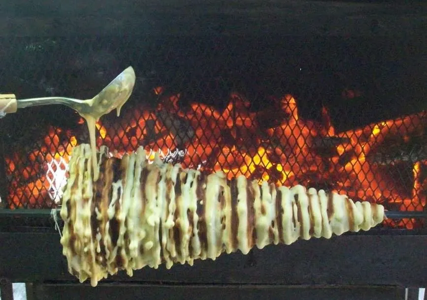Fabrication artisanale de gâteaux à la broche cuit au feu de bois, vente uniquement sur commande. Pas de démonstration possible.