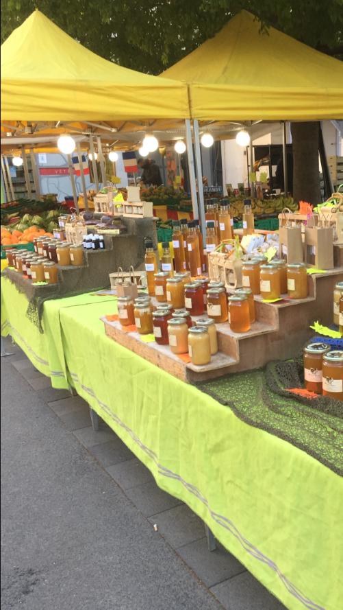 Les produits : miels, pains d’épices, caramandes (subtile mélange d’amandes et caramel), gelée royale, pollen, coffrets.