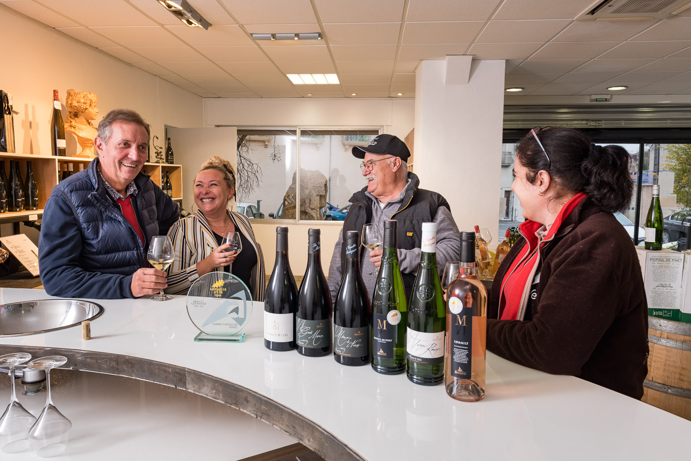 Aujourd’hui, 425 vignerons passionnés cultivent un vignoble exceptionnel entre terre et mer, des garrigues aux bords de l’étang de Thau, de la vallée de l’Hérault aux Cévennes. Grâce à la diversité de ses terroirs et à ses chais de Montagnac et Cournonsec, la cave est un acteur clé des appellations régionales (AOP Picpoul de Pinet, AOP Languedoc, IGP Pays d’Oc, Côte de Thau…). Elle incarne un savoir-faire unique, alliant tradition et innovation au service de vins d’excellence.