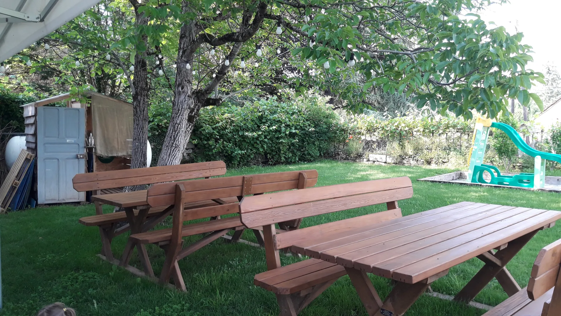 Julien et Margaux vous accueillent dans un jardin ombragé offrant une vue panoramique sur le bourg et des pâtures verdoyantes.