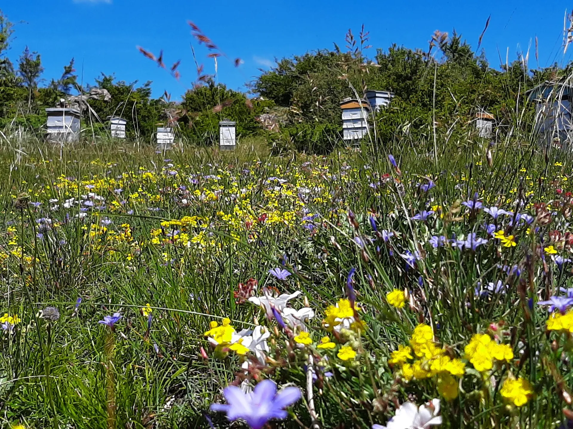 Apiculture traditionnelle. Dans le respect des abeilles.Ruches non transhumées. Informations et visites dans les ruchers sur rendez-vous téléphonique, maximum 2 personnes, 2 enfants.