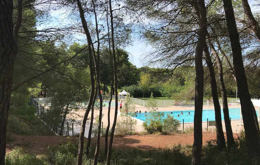 Piscine chauffée en pleine pinède méditerranéenne, bassin surveillé.