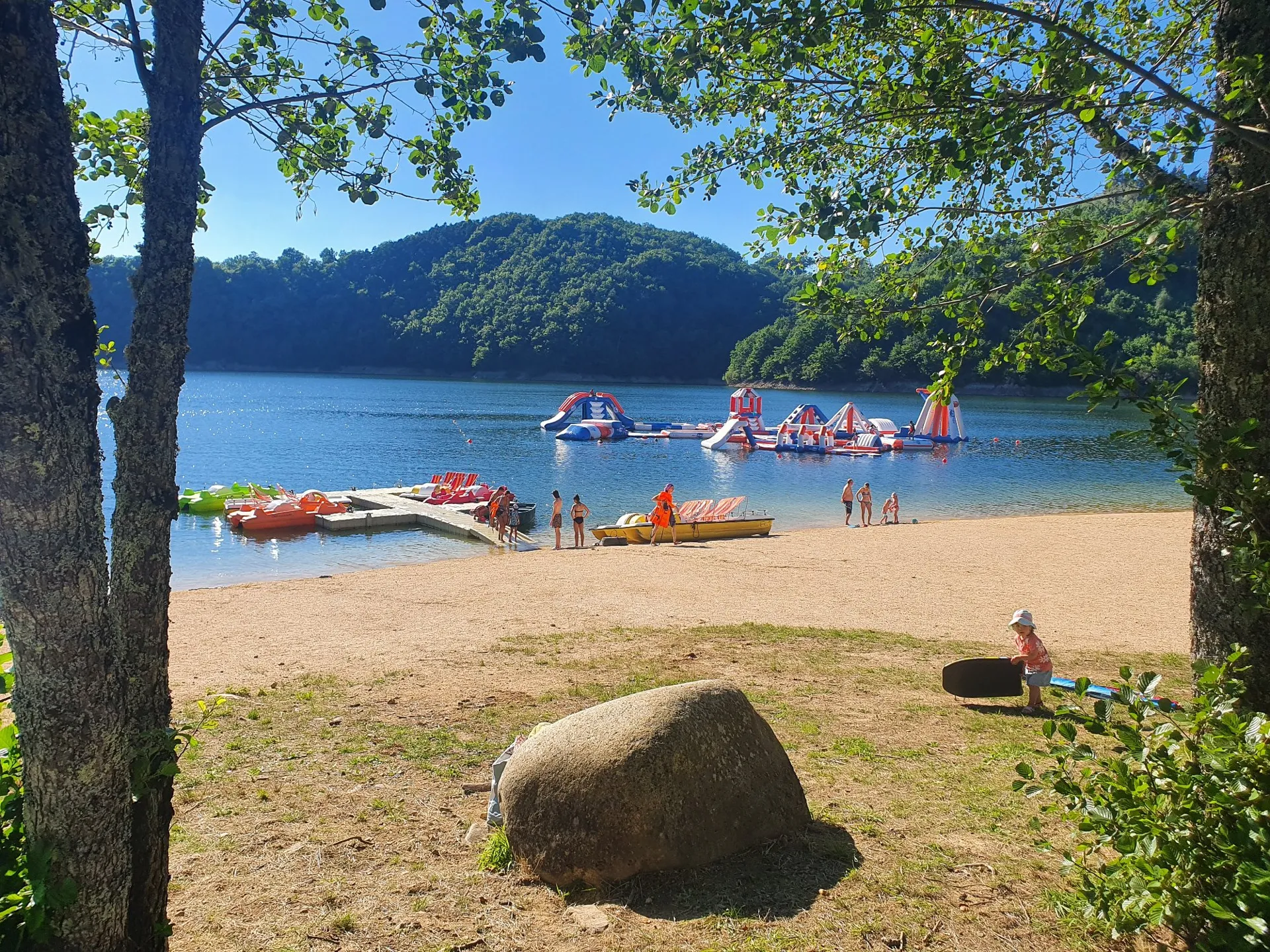 Location de pédalos, canoës, paddles, barques. Parc aquatique surveillé très ludique.