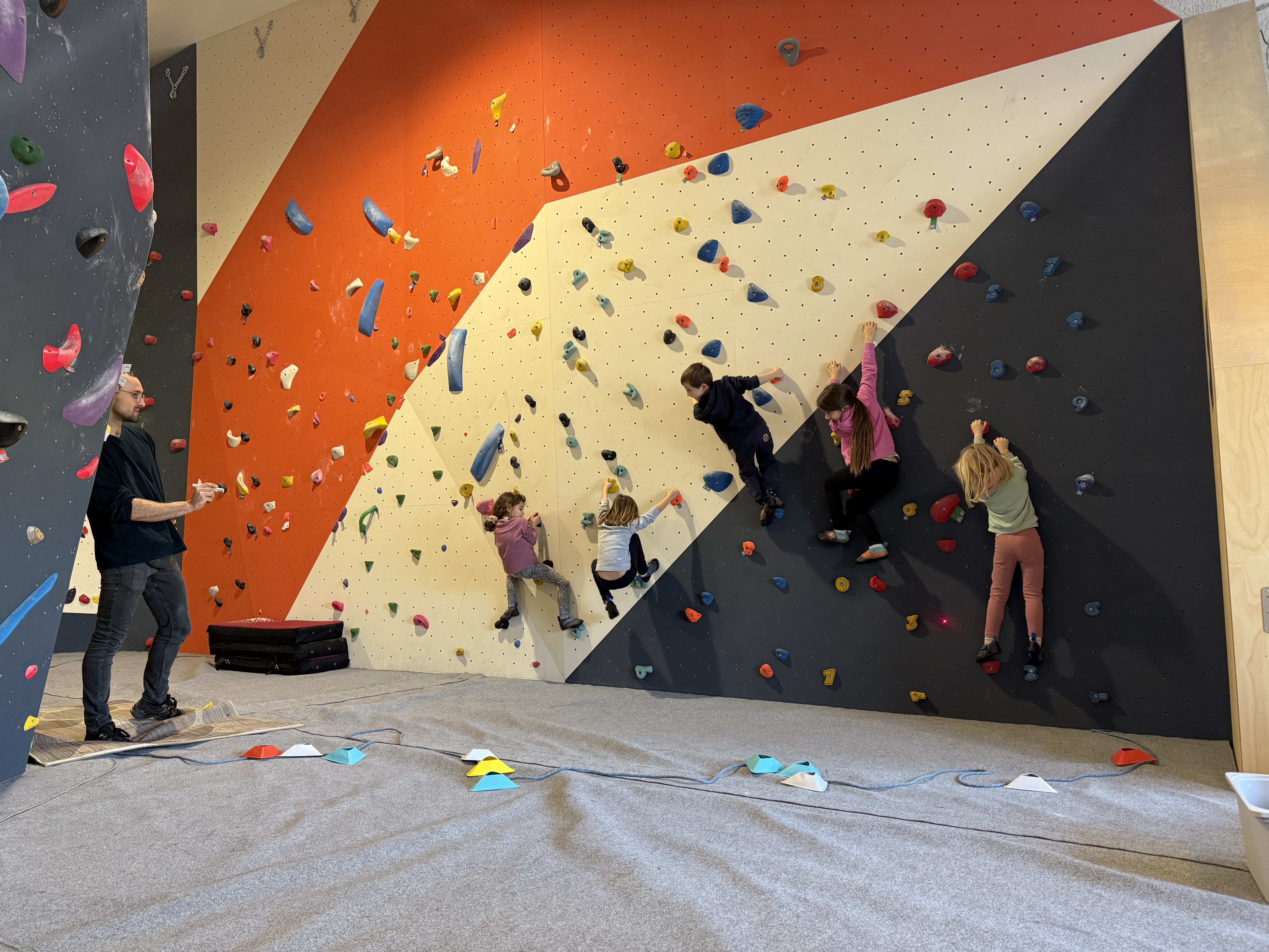 Nous proposons une pratique accessible à tous, dès 4 ans, sans corde ni baudrier. L’escalade de bloc est un sport ludique et complet, qui mélange effort physique, réflexion et convivialité.