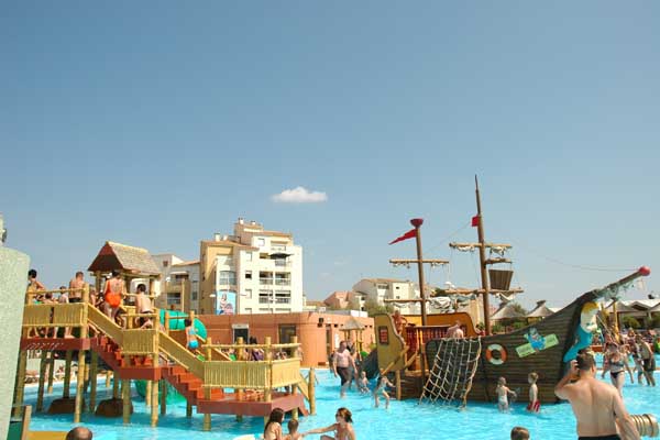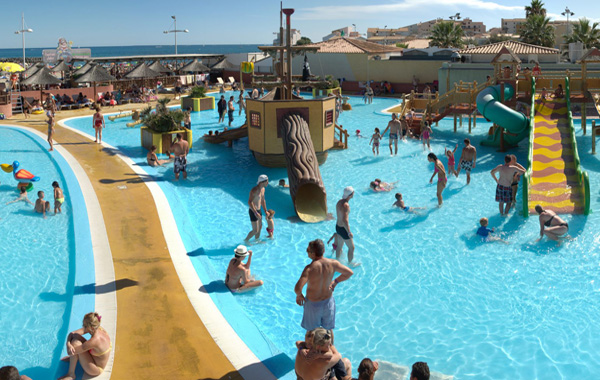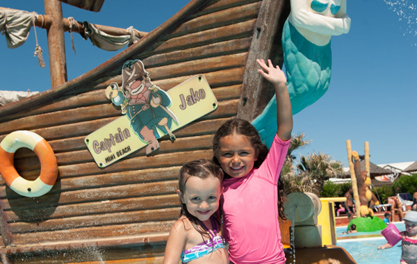 Mini-parc aquatique réservé aux enfants jusqu’à 12 ans : toboggans, bateau pirate, canons à eau, balançoires aquatiques…