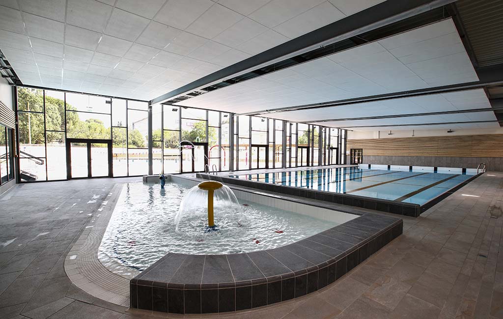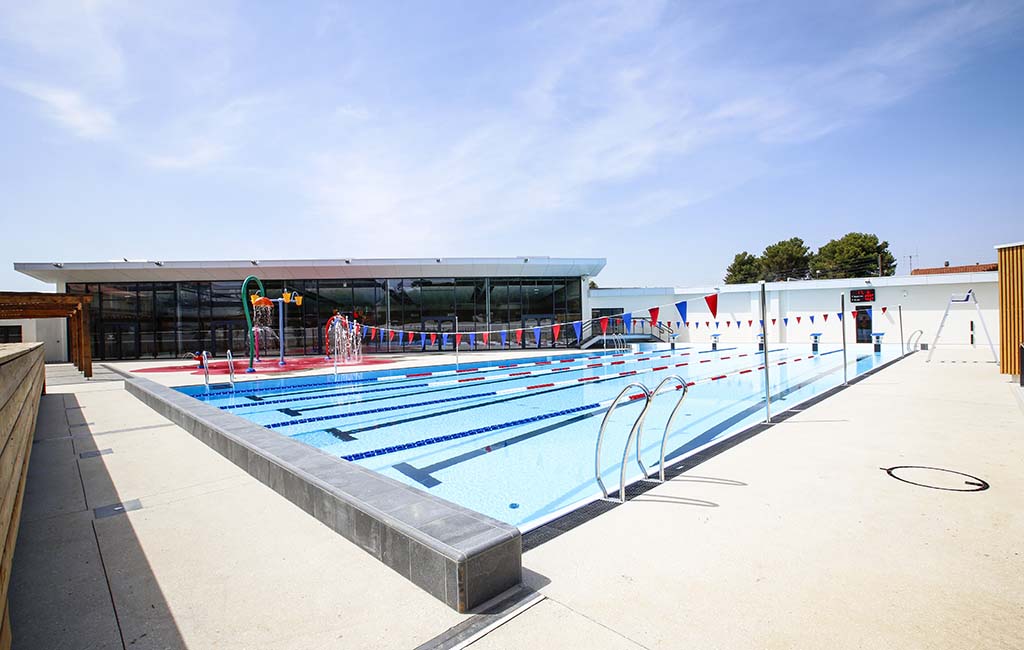 Le centre aquatique Ô Pézenas propose 5 788 m² d’espaces innovants et d’activités de qualité avec une halle bassin, un bassin nordique de 324 m², un splashpad de 70m² et des plages végétalisées.