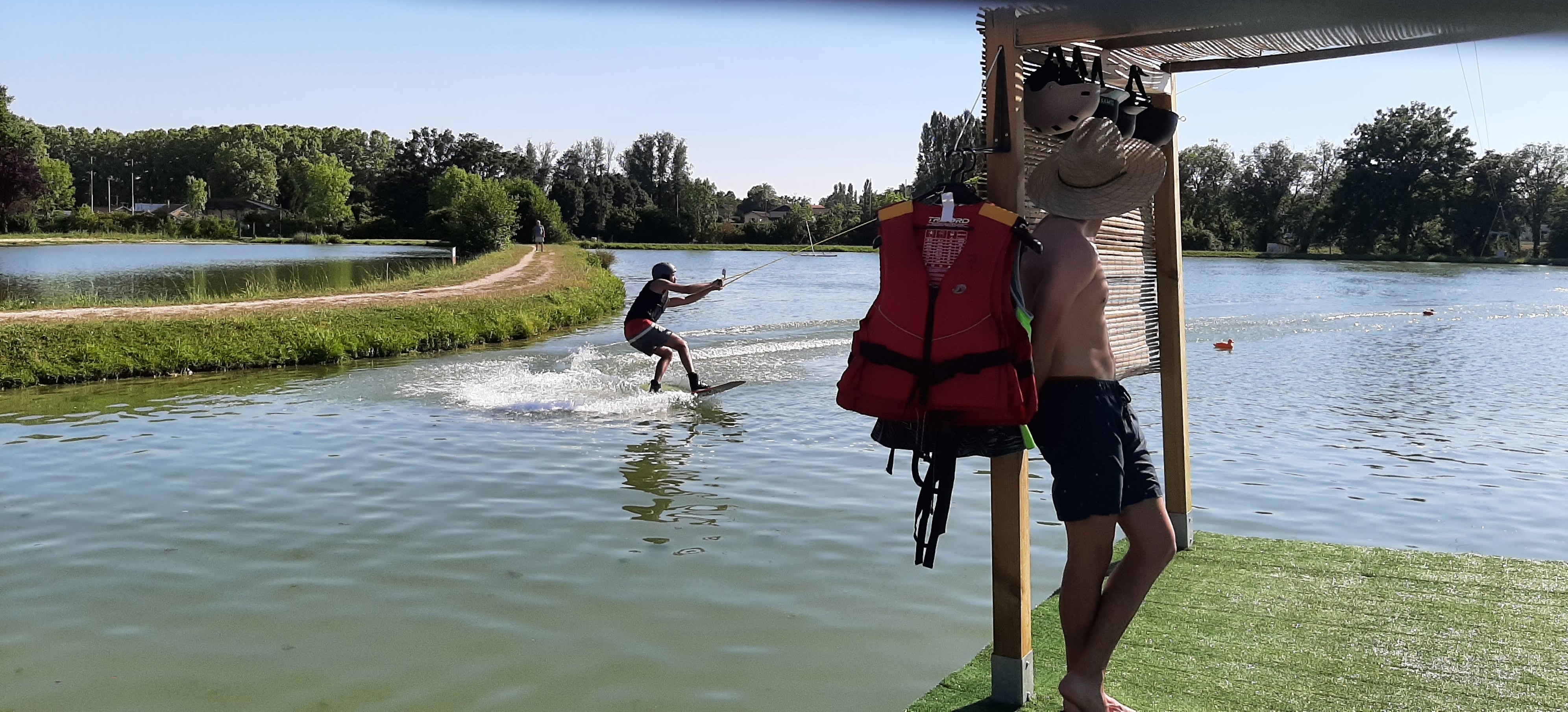Venez vous essayer au Wakeboard accompagné par Vivien. Que se soit pour découvrir le wakeboard, évoluer dans la discipline, chercher des conseils avisés, Vivien est la pour vous guider, vous accompagner et vous faire passer un bon moment sur votre planche. Seul ou à plusieurs, vous évoluez sur le lac en toute autonomie. Pour un moment de détente, une séance de sport, l’envie de partager une expérience entre amis ou en famille, le paddle est idéal tant cette pratique est accessible. La bouée tractée accompagné par Vivien réservée aux enfants La bouée tractée que vous connaissez, tractée par un bateau sur le mer ou l’océan, sort des sentiers battus ! C’est par le câble du téléski nautique que les amateurs de sensations fortes (ou moins fortes) découvriront cette activité pleine de bonne humeur. L’espace guinguette est à votre disposition tous les jours !