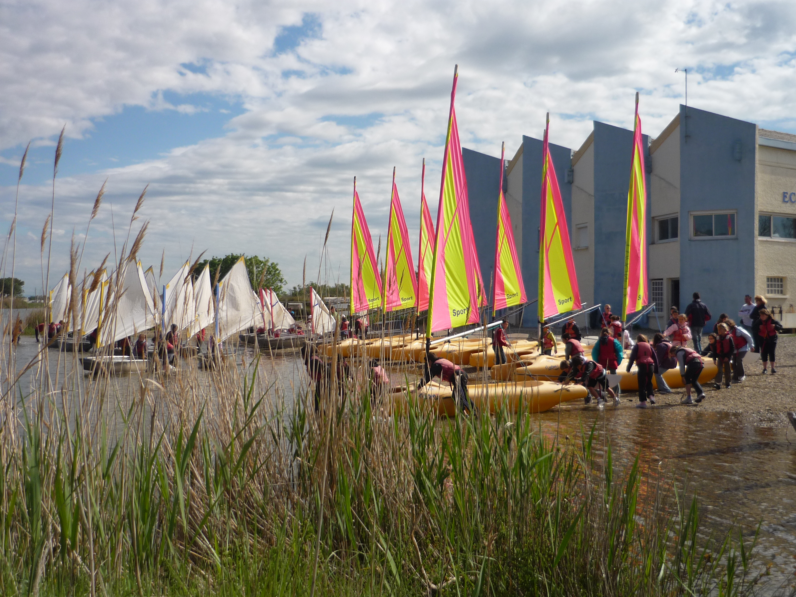 Ouvert toute l’année, l’école de voile possède un accès à deux plans d’eau. L’Orb et la mer, permettant d’adapter la navigation aux conditions météorologiques, et garantissant une pratique en toute sécurité.