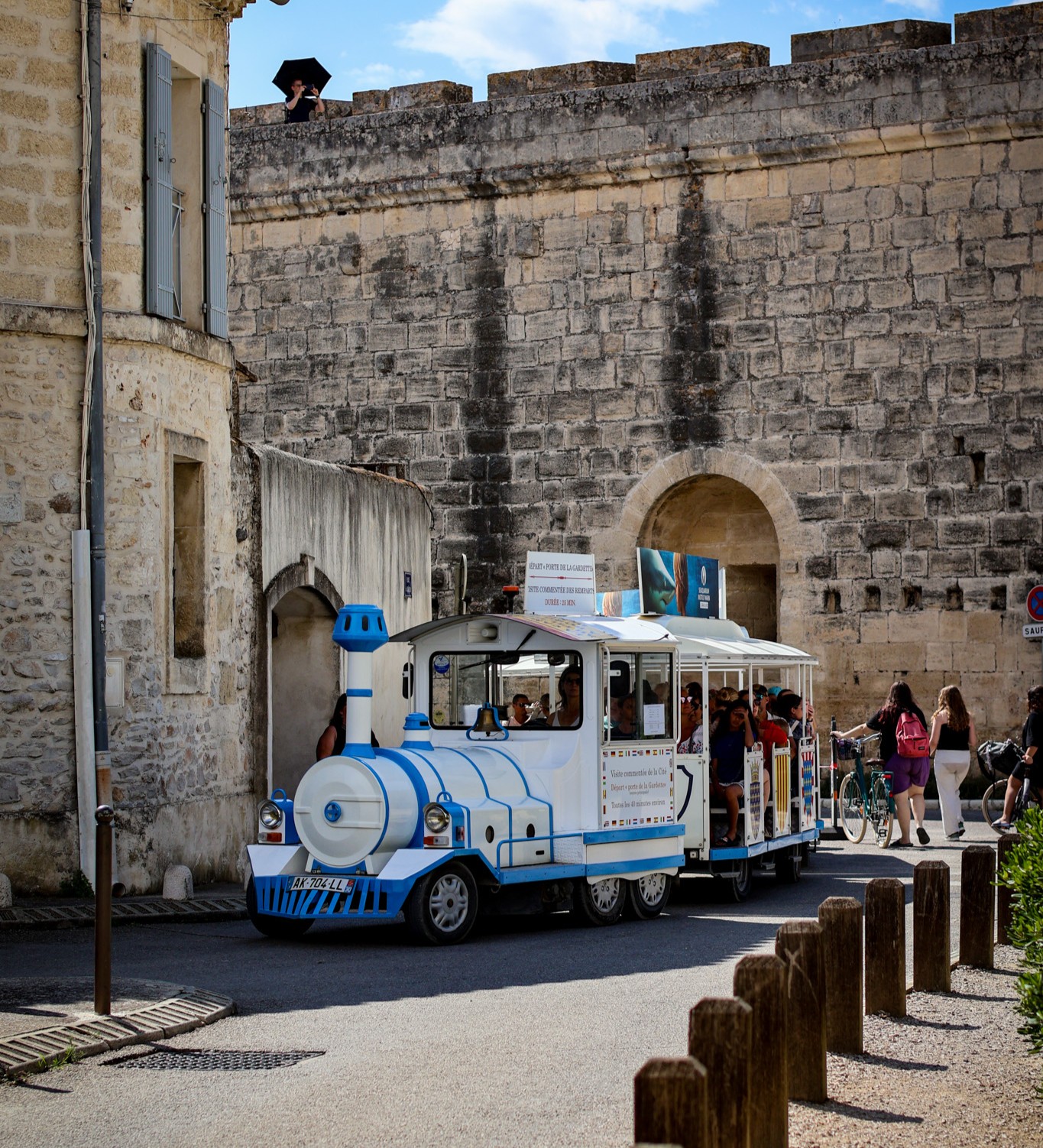 Découverte de la cité médiévale à bord du petit train touristique d’Aigues-Mortes. Commentaires disponibles en Anglais, Allemand, Italien, Espagnol, Catalan et Néerlandais.