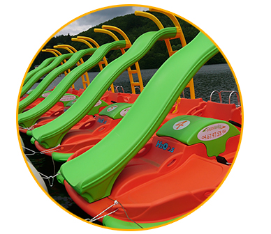 Location de pédalo transat (2 personnes) ou toboggan (5 personnes – Pédalo toboggan à deux pédaliers).